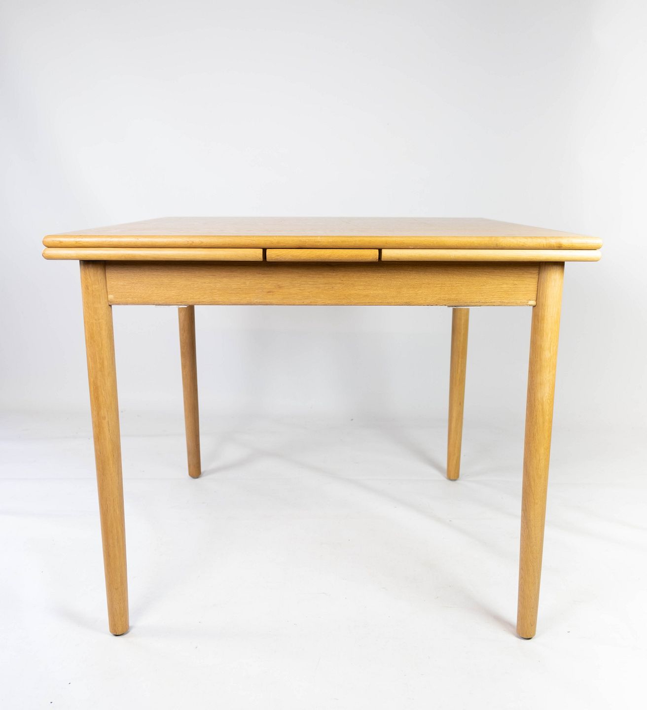 Spisebord i eg med hollandsk udtræk af dansk design fra 1960erne. The table is in great vintage condition.