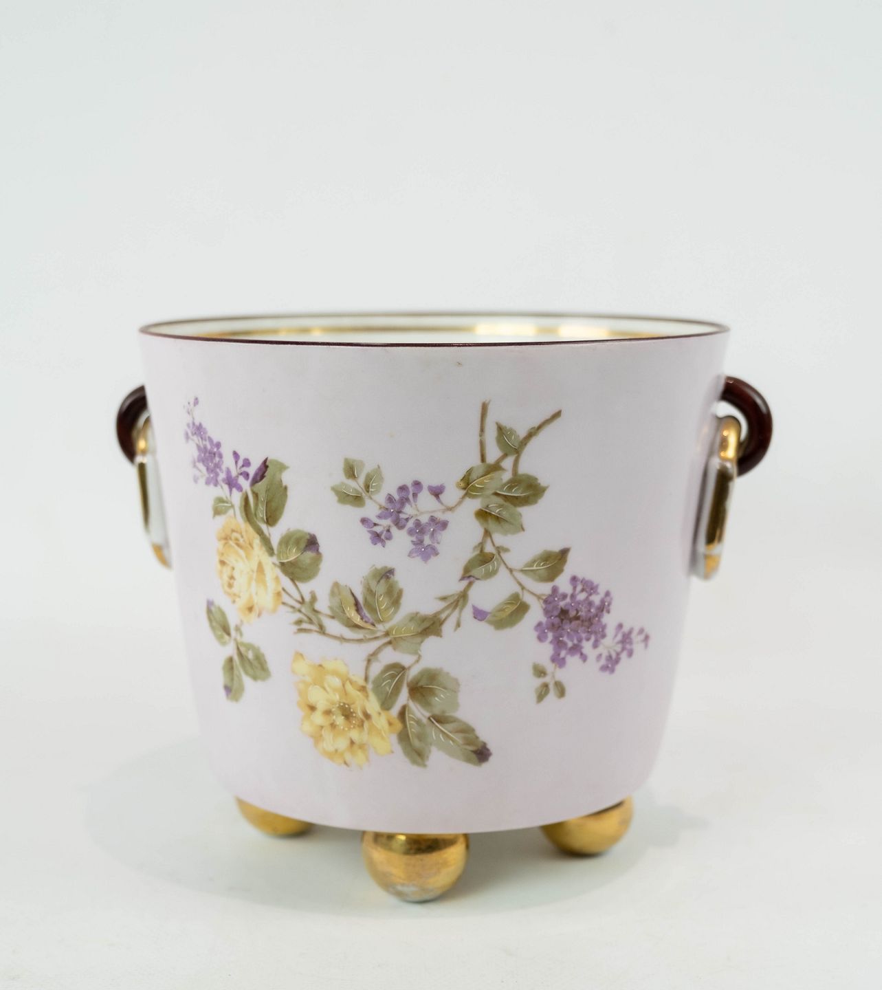 Flowerpot in light colours decorated with flowers, in great vintage condition from the 1870s.