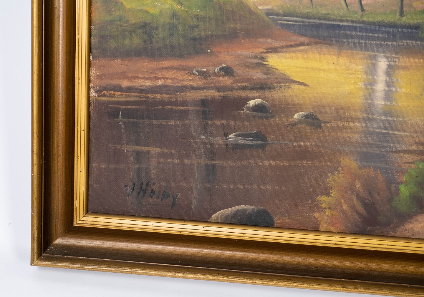 SoldOil painting with nature motif and wooden frame, signed Højby from the 1930s.