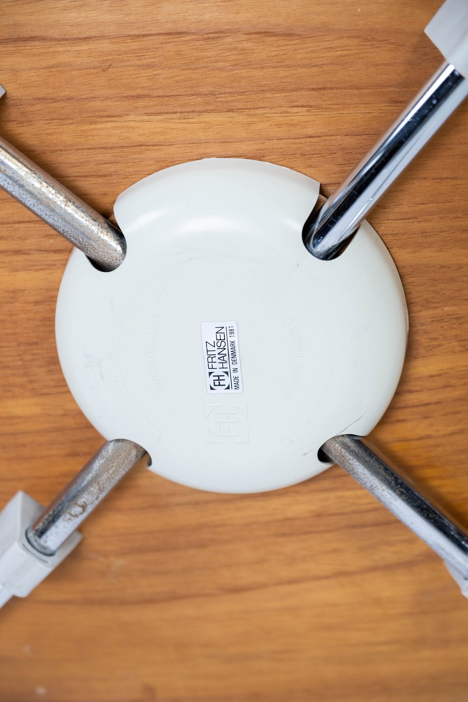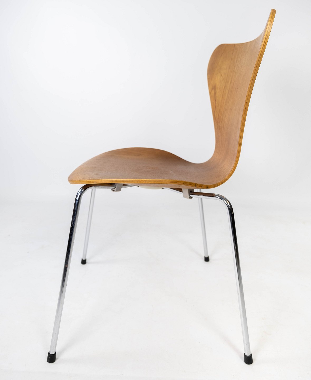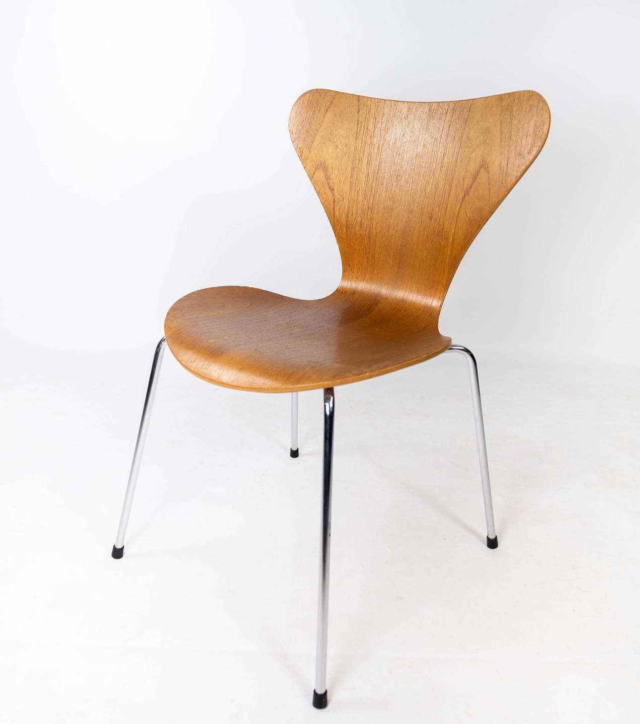 SoldA set of 12 series Seven chairs, model 3107, of teak designed by Arne Jacobsen and manufactured by Fritz Hansen in 1996. The chairs are in great vintage condition.