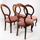 Set of four Rococo dining room chairs of mahogany and upholstered with red fabric from 1860.