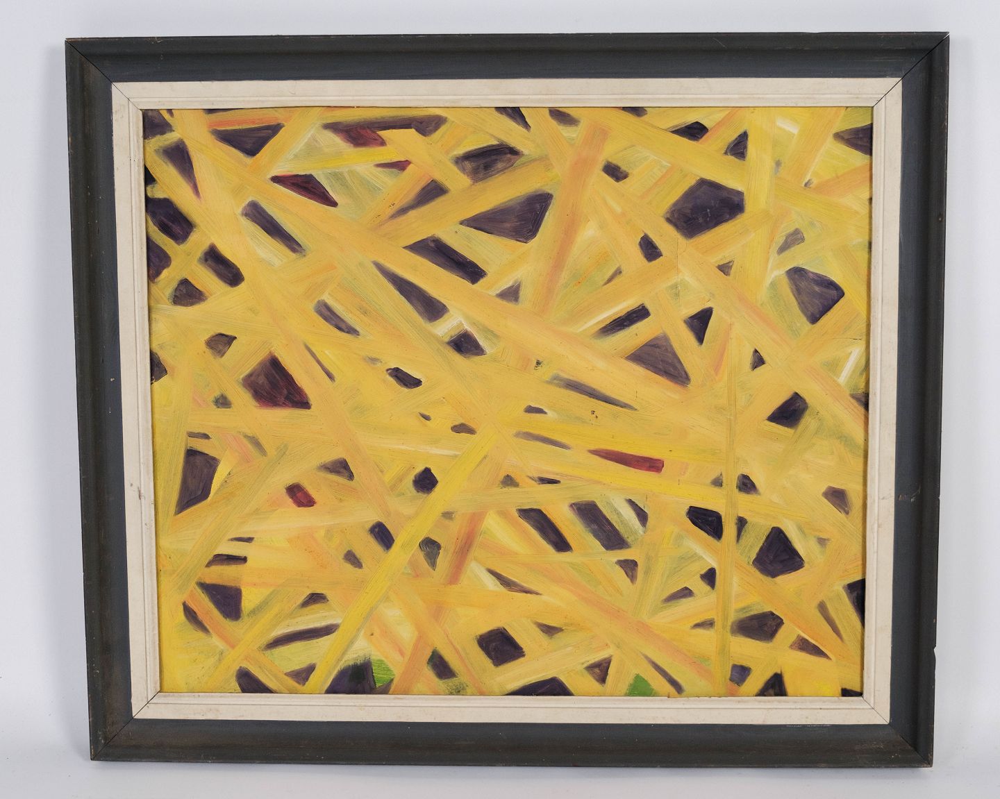 Painting in yellow colors with dark wooden frame from the 1970s.