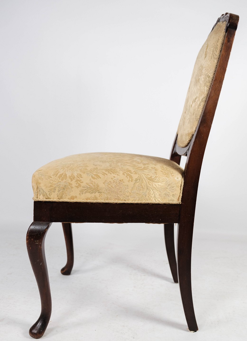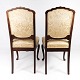 Set of dining room chairs of oak and upholstered with light fabric, in great antique condition from the 1930s.