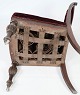 Sæt af fire spisestuestole af mahogni og polstret med bordeaux velour fra 1920erne.