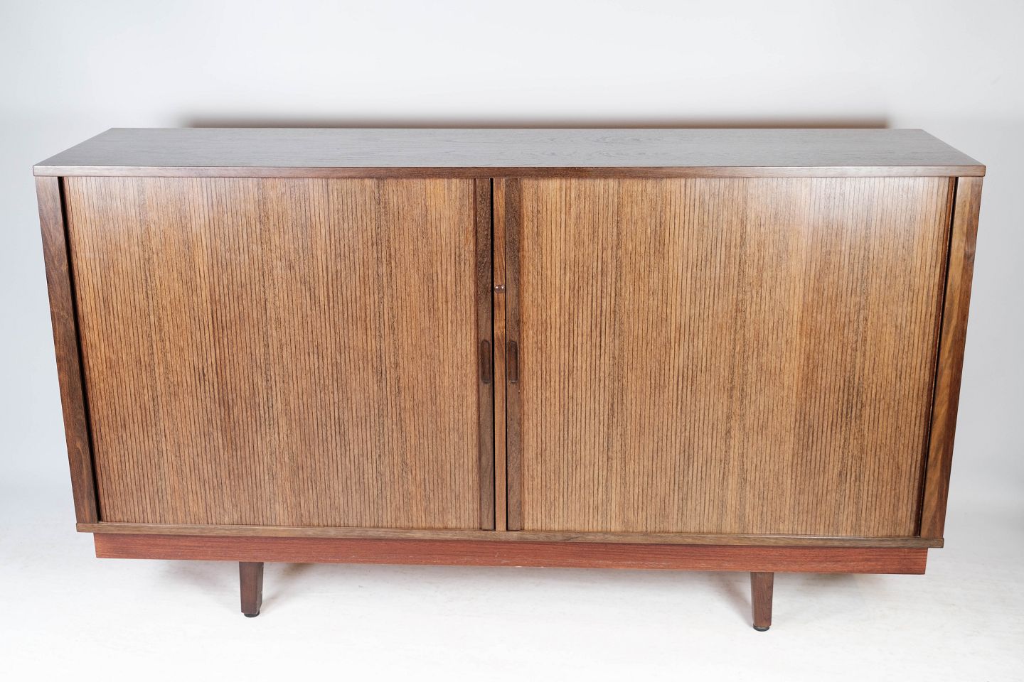 Low sideboard with sliding doors in rosewood of danish design from the 1960s. The item is in great vintage condition.