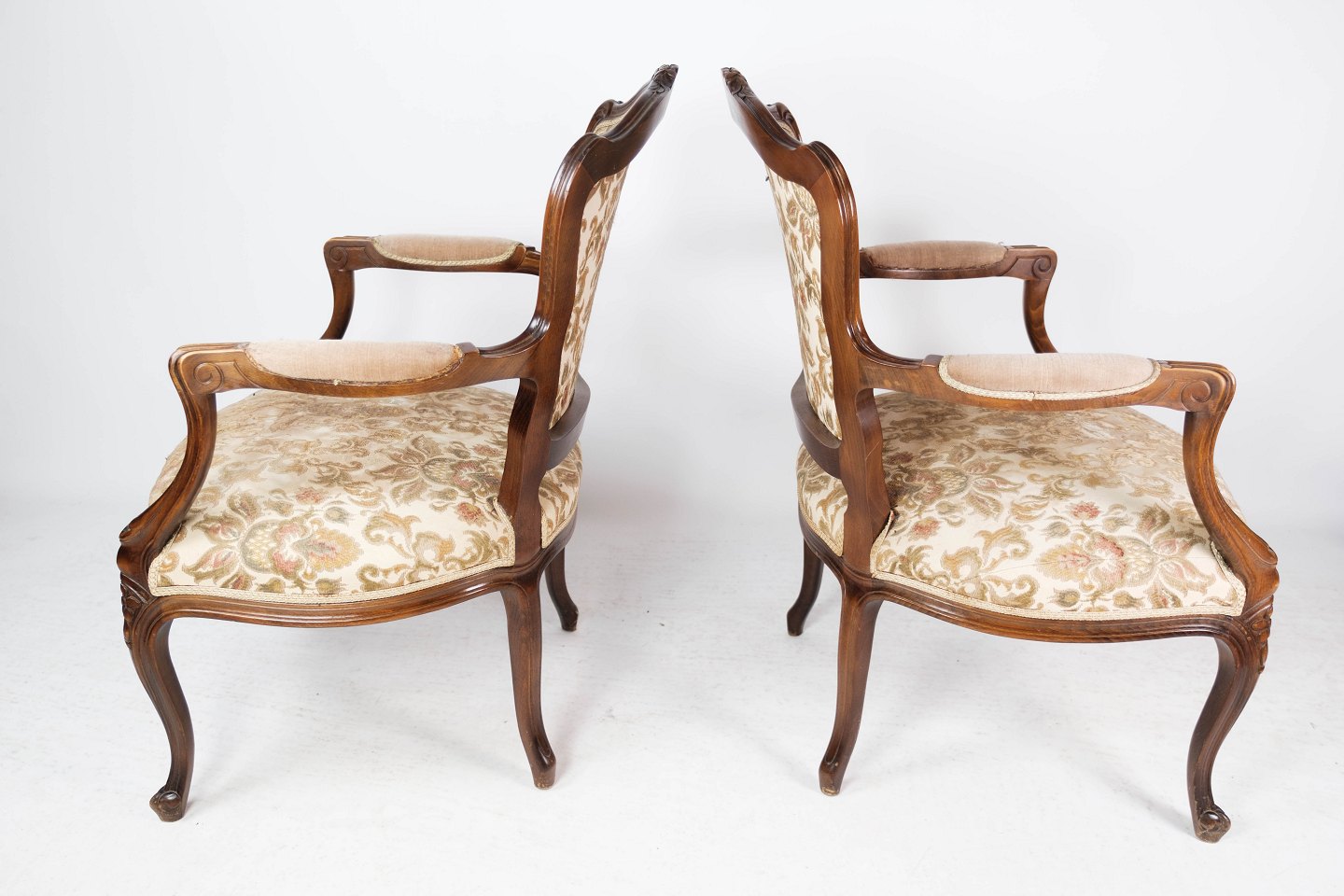 Sæt af Rokoko armstole af mahogni og polstret med lyst stof, i flot antik stand fra 1920erne.