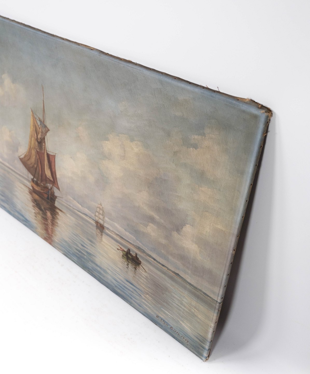 Oil painting with marine motif with by A. Sten Bille from around 1910.
