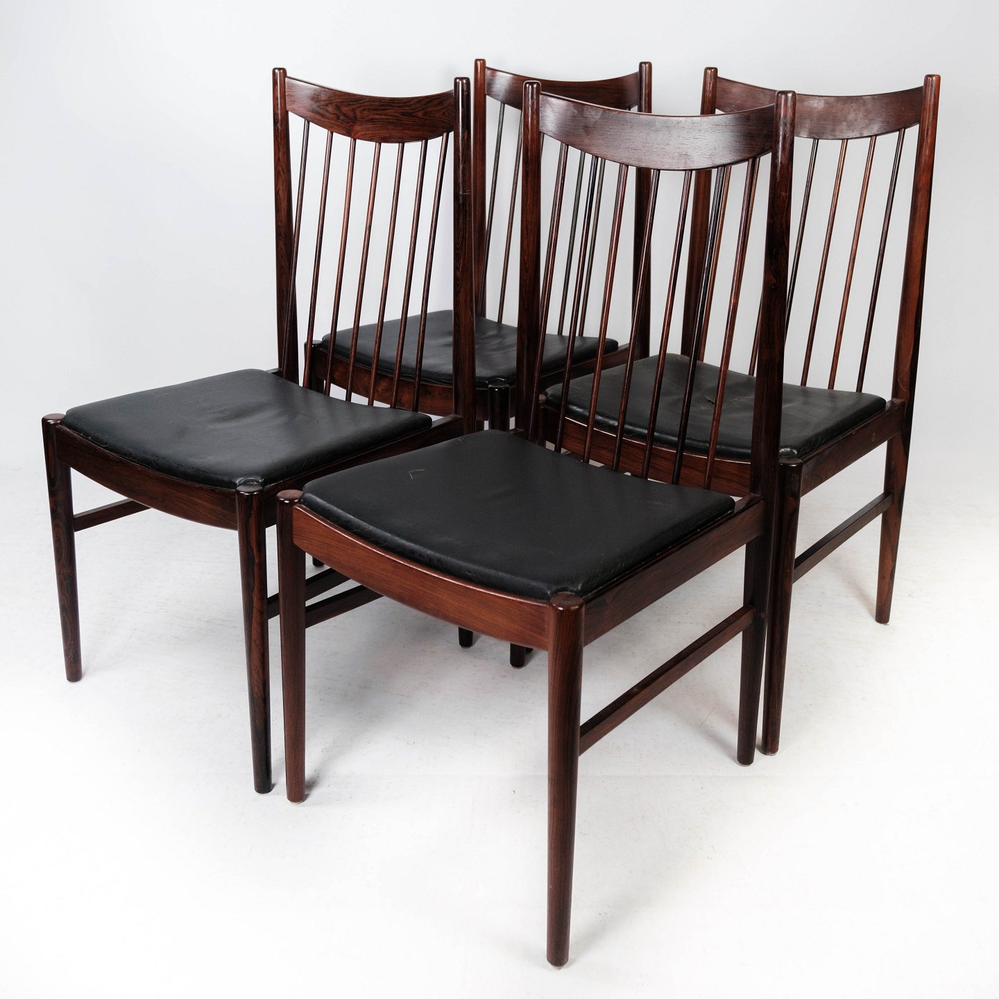 SoldSet of four dining room chairs, model 422, in rosewood and upholstered with black leather designed by Arne Vodder from the 1960s. The chairs are in great vintage condition and we have 6 in total.