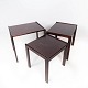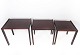 Dette sæt indskudsborde er et elegant eksempel på dansk design fra 1960'erne, skabt med et smukt mørkt træ, der udstråler en tidløs elegance.