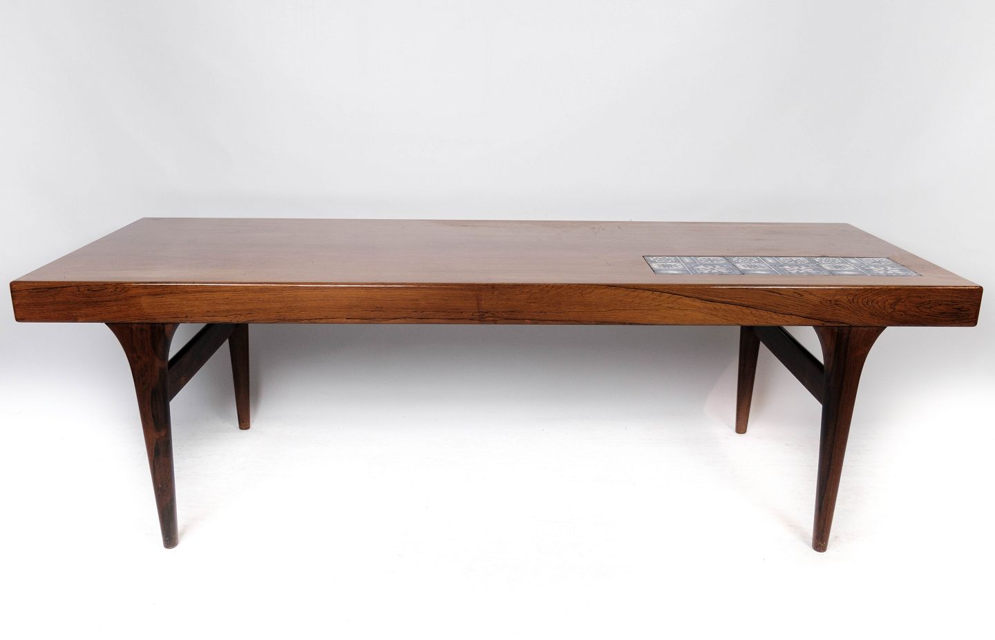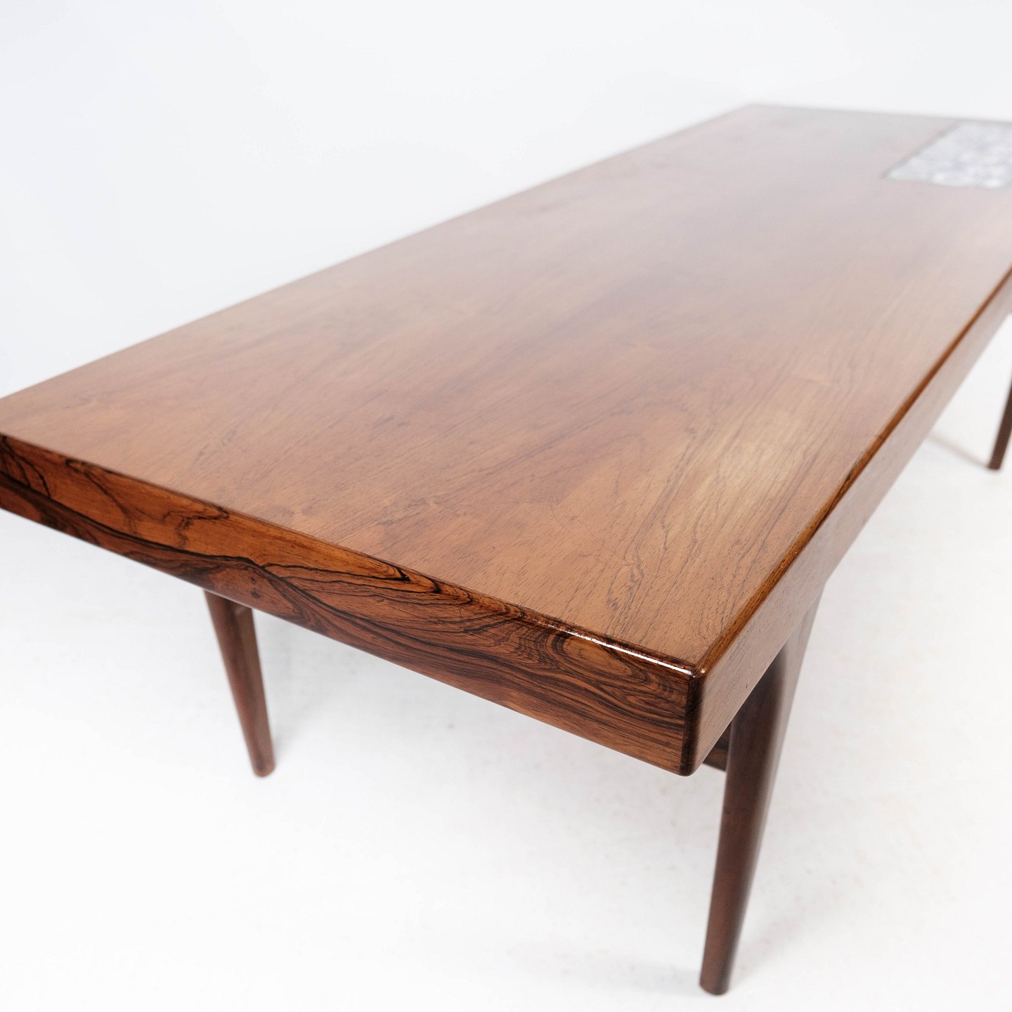 Coffee table in rosewood with tiles, of Danish design manufactured by Silkeborg Furniture in the 1960s.