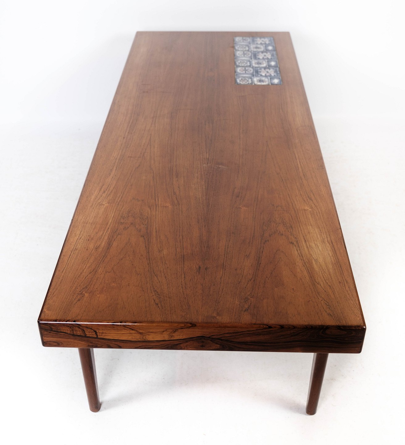 Coffee table in rosewood with tiles, of Danish design manufactured by Silkeborg Furniture in the 1960s. The table is in great vintage condition.