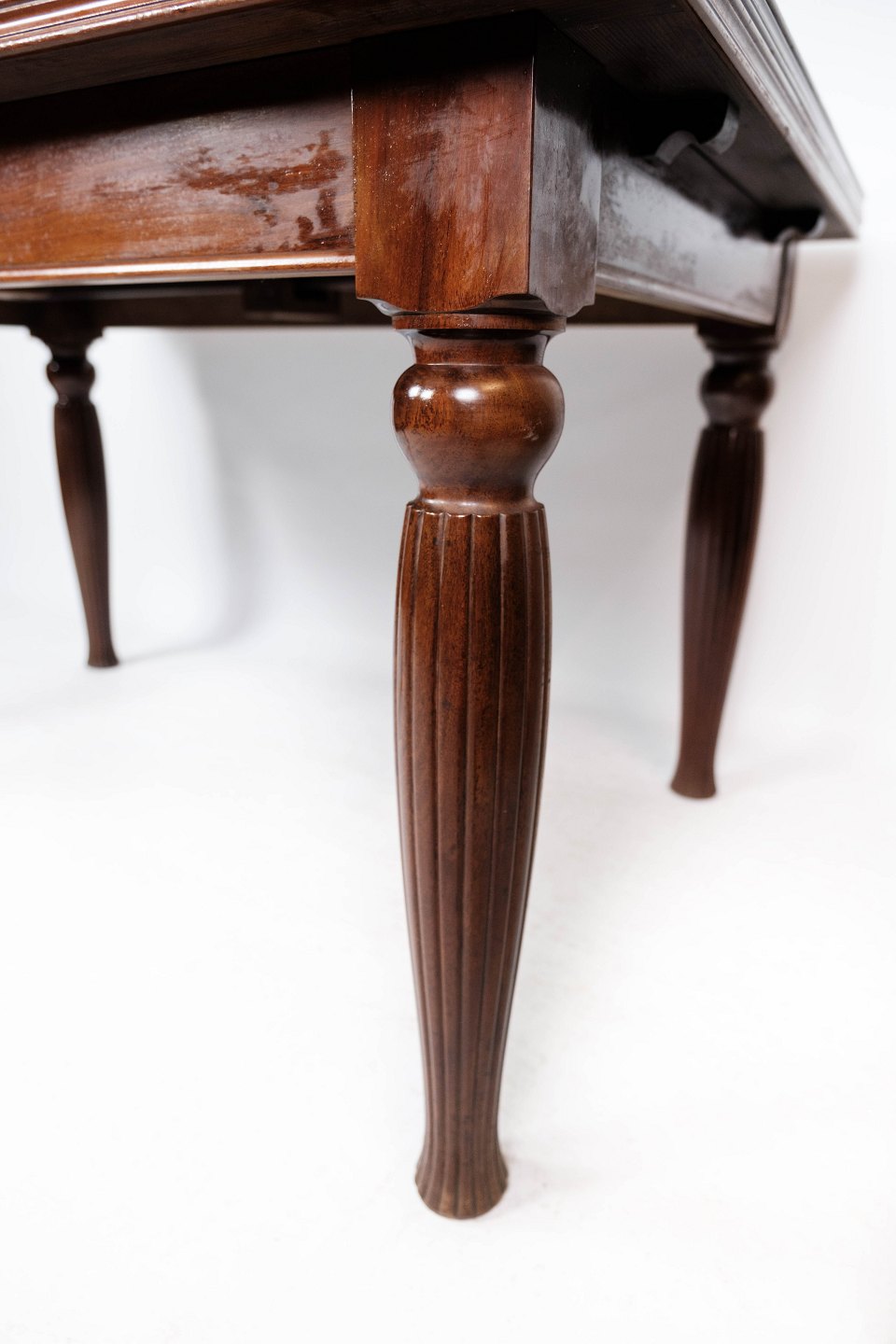 SoldDining table in mahogany with dark top plate and extensions, in great antique condition from around 1930.
