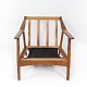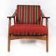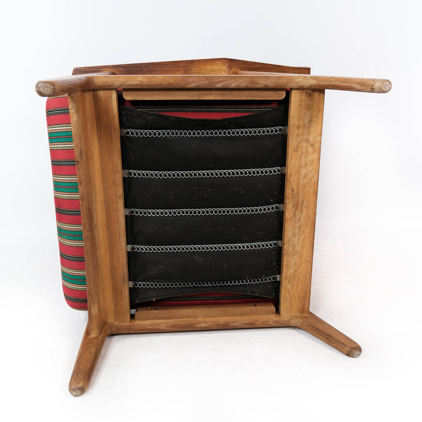 Armstol i eg og polstret med rødt stof, designet af H. Brockmann Pedersen fra 1960erne.