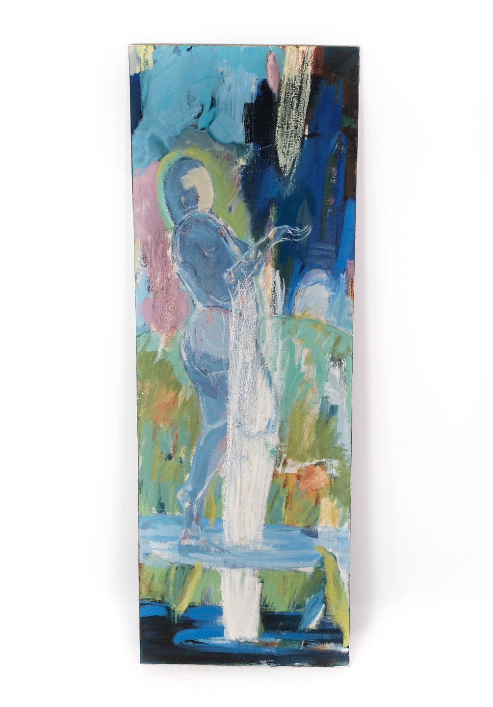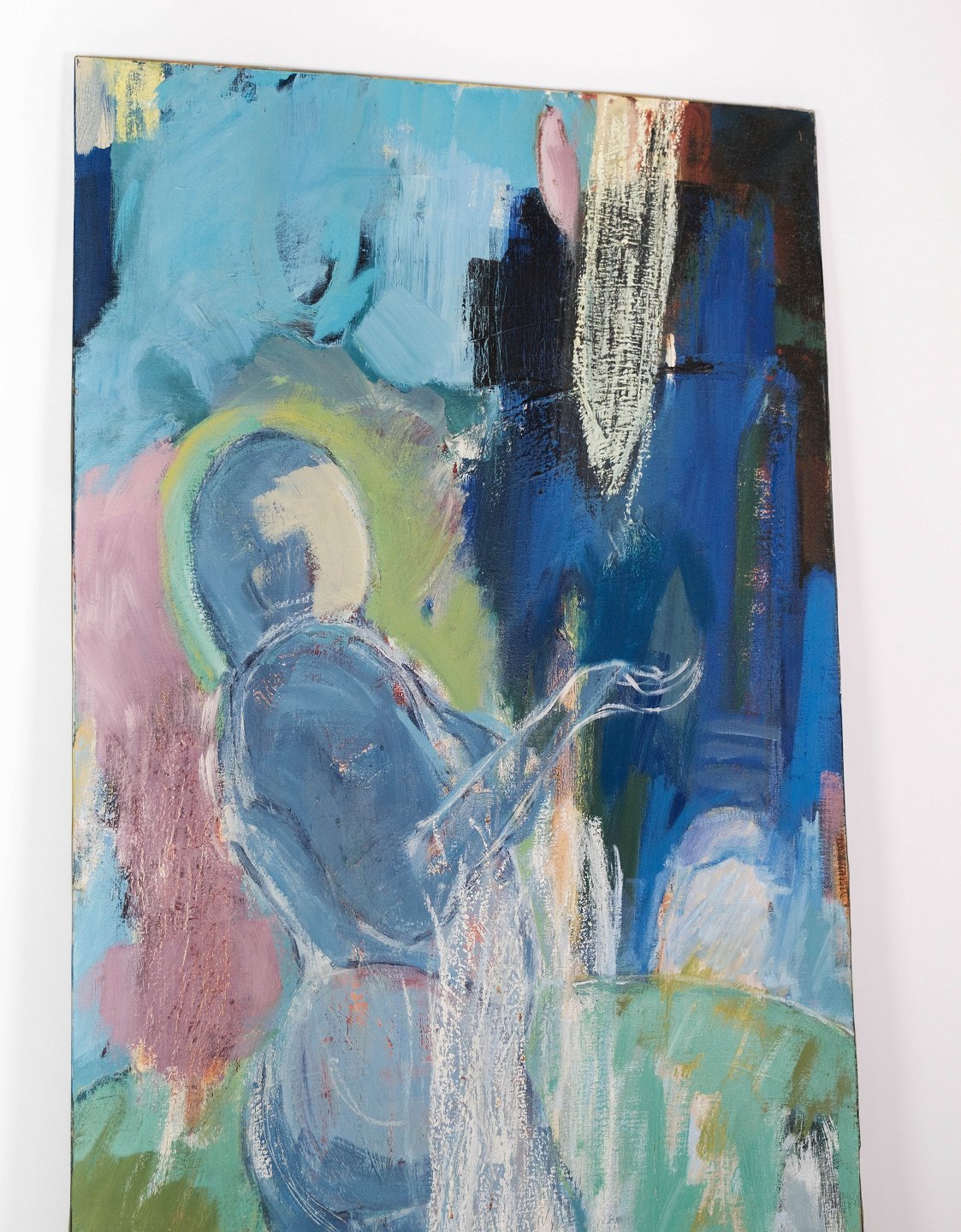 Oliemaleri på lærred i blå farver af den dansk kunster Åse Højer, f. 1952.