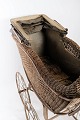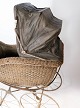 Antik barnevogn af flet med kaleche og metal hjul, fra omkring 1930erne.