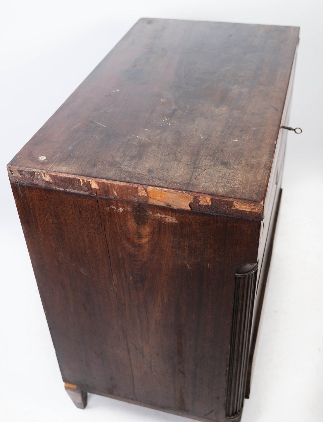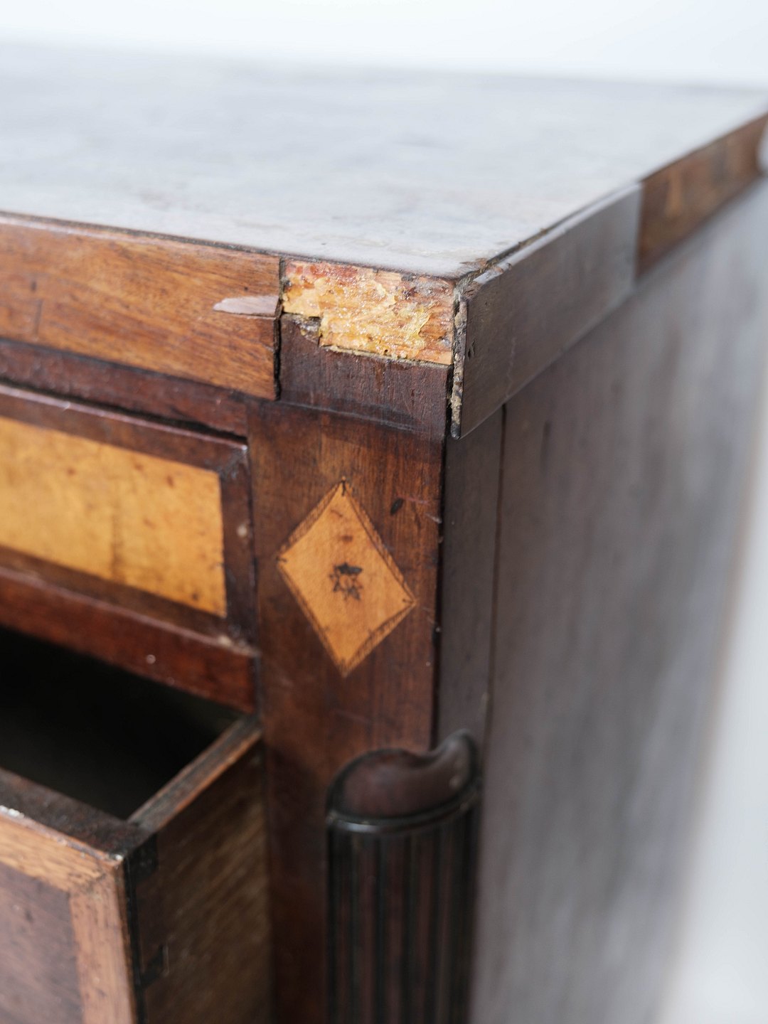 Louis Seize kommode af mahogni med intarsia. Kommoden er i flot antik stand.