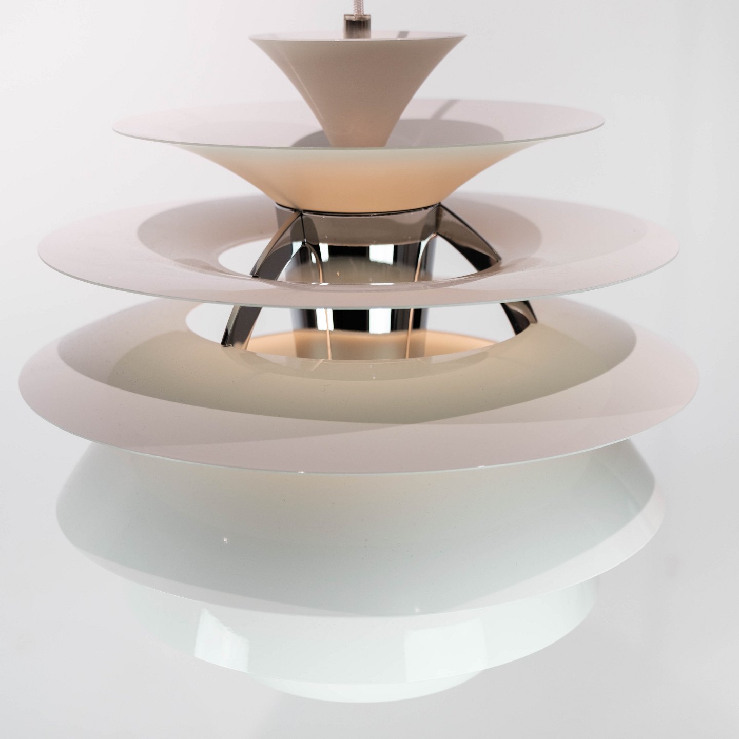 PH kuglelamel også kaldet Snowball i højglans hvid designet af Poul Henningsen og fremstillet af Louis Poulsen. Lampen er i flot brugt stand.