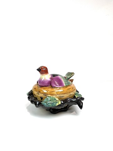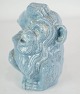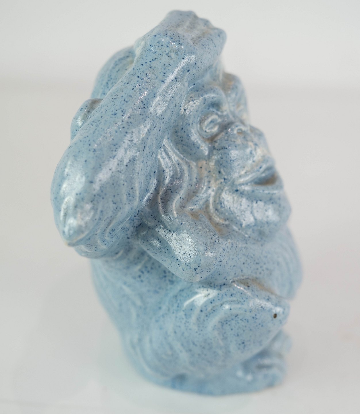 Ceramic figure in the shape of a monkey with light blue glaze from the 1960s.