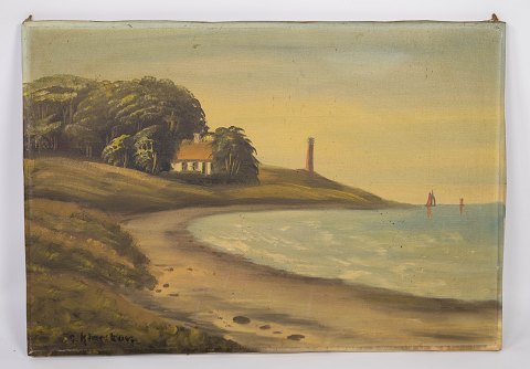Maleri på lærred med naturmotiv og forgyldt ramme fra 1940erne.