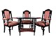 Three armchairs in dark wood and upholstered with red fabric, in great antique condition. The chairs are in great vintage condition.