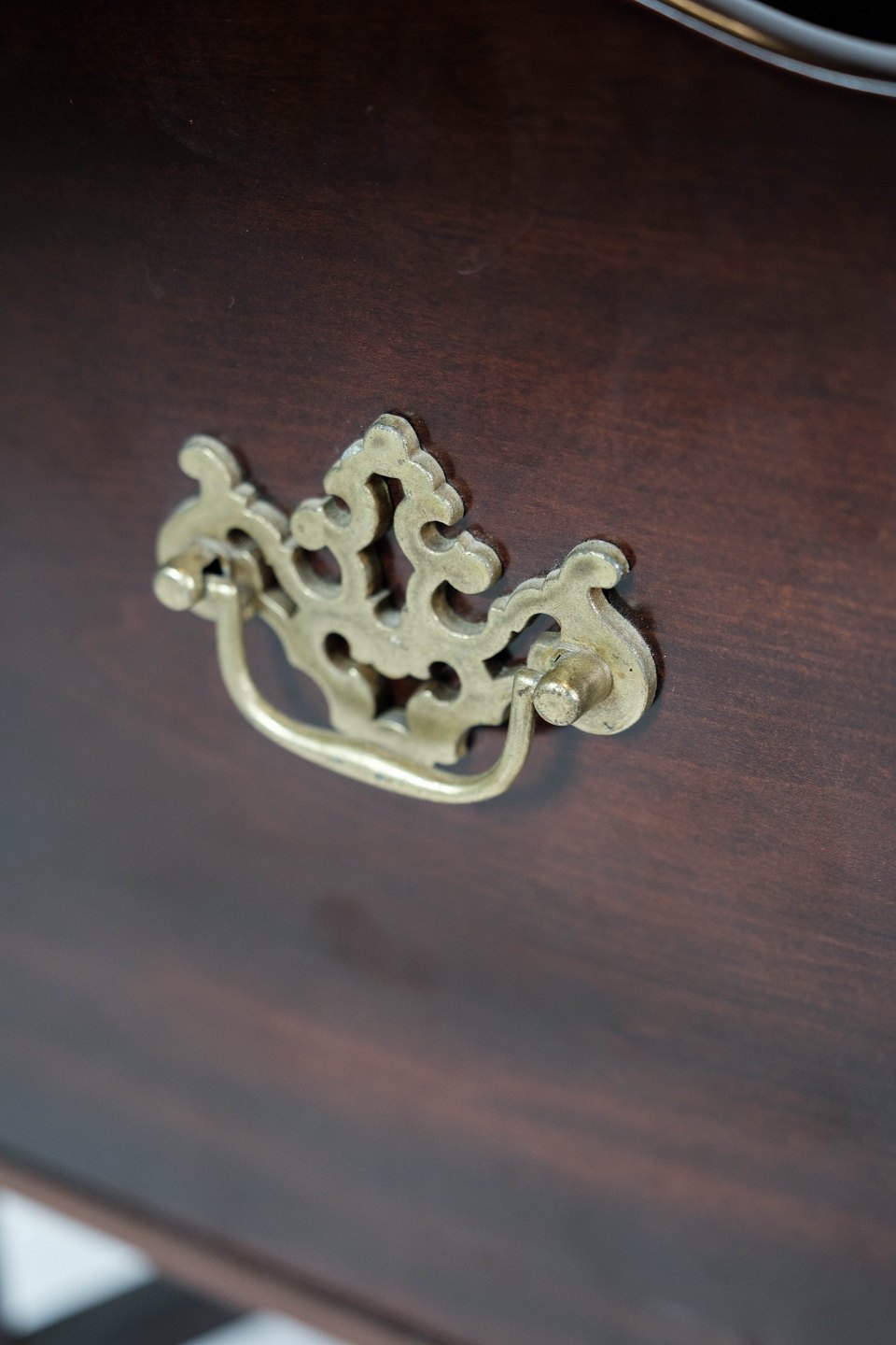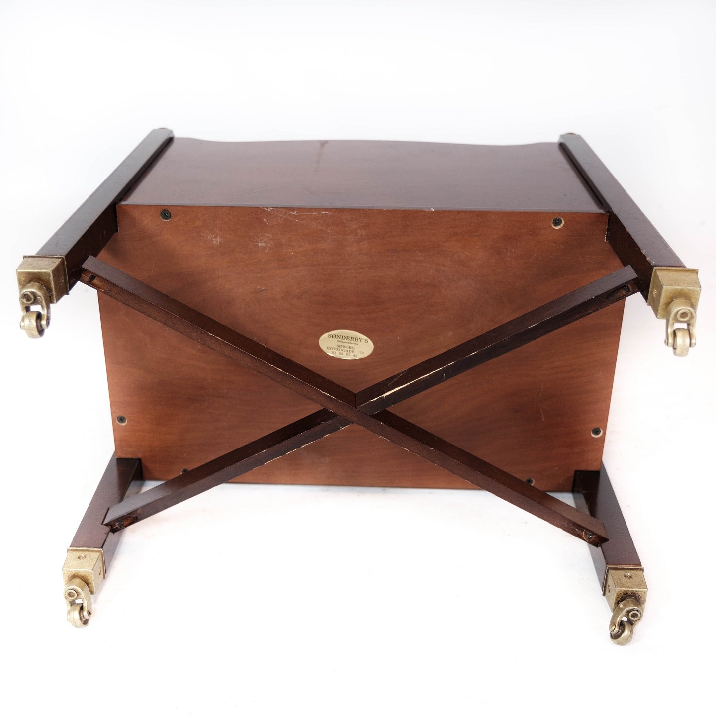 Avisholder af mahogni dekoreret med messing af dansk design fra 1960erne.