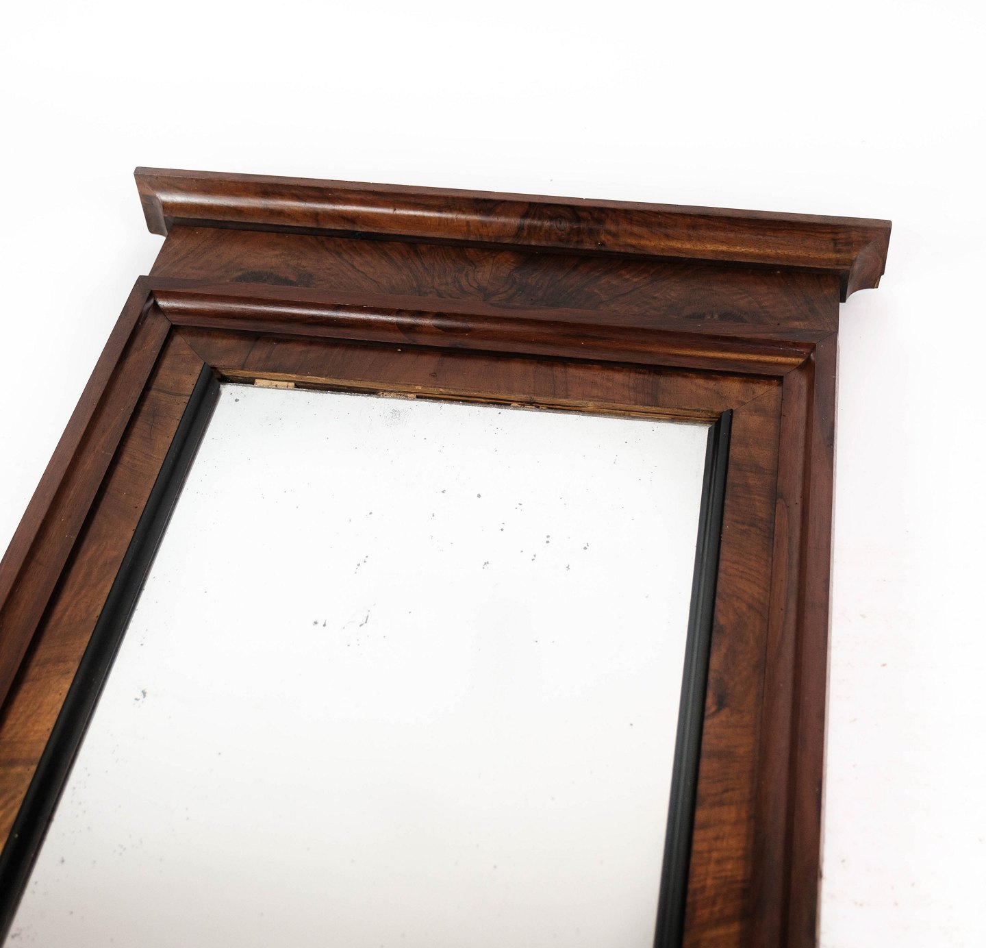 Højt spejl af mahogni, i flot antik stand fra 1860erne.