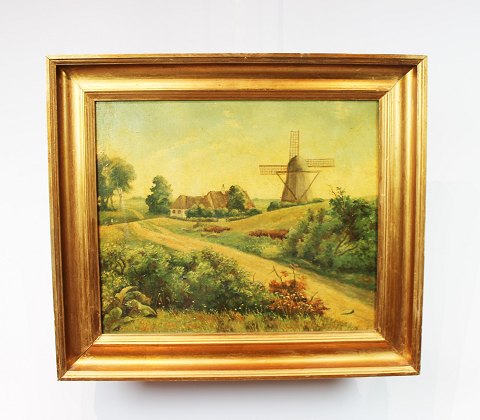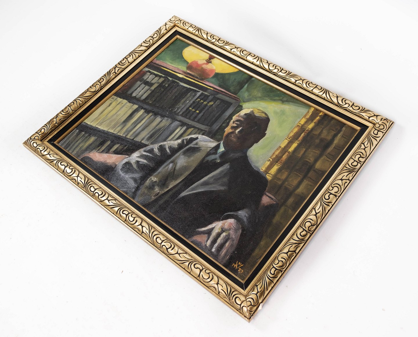 Maleri på lærred med portræt og forgyldt ramme, signeret NV fra 1937.
