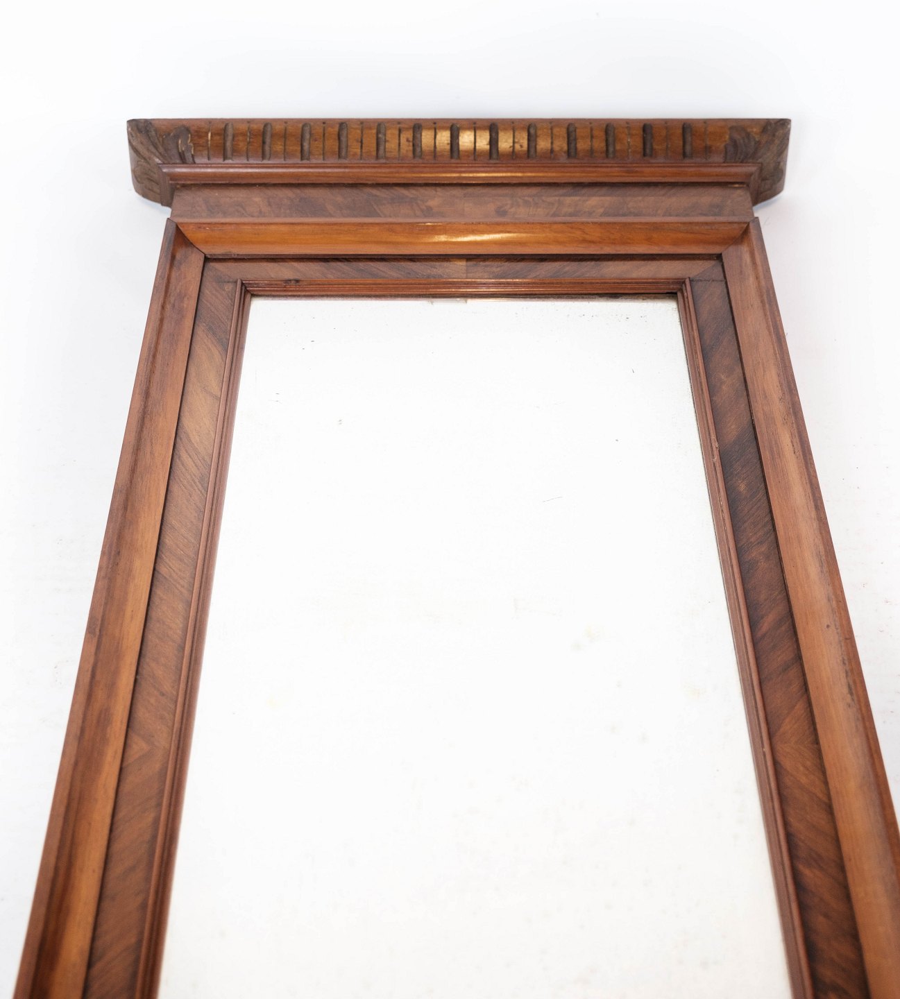 Højt spejl af mahogni, i flot antik stand fra 1880erne.
