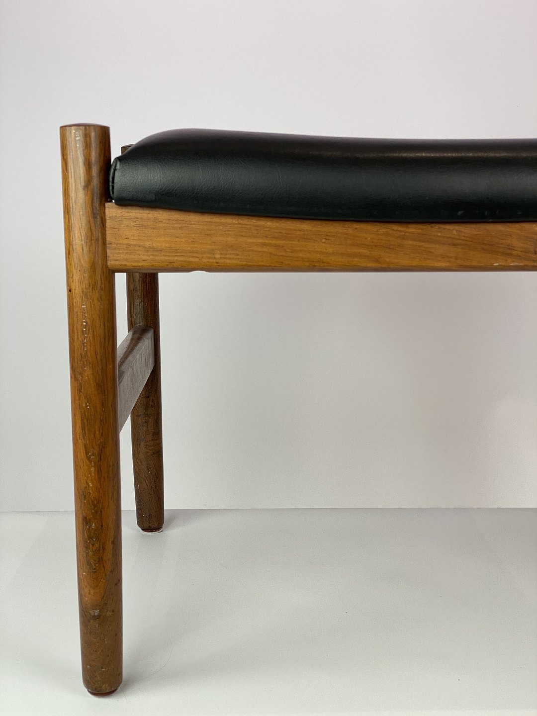 SoldStool of black leather and rosewood, of Danish design manufactured by Spøstrup Furniture in the 1960s. The stool is in great vintage condition.