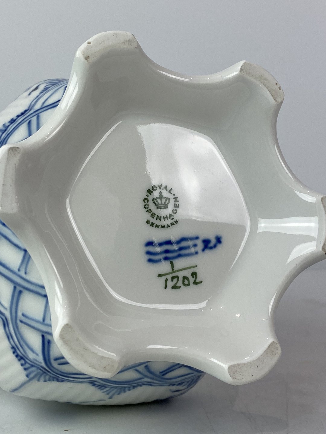 Kgl. Musselmalet helblonde kaffekande, nr.: 1/1202. Kanden er i flot brugt stand.