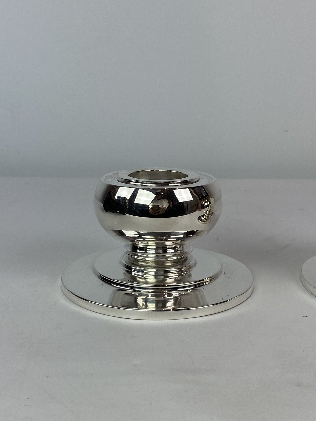 Sæt af to lave lysestager af 925 sterling og tretårnet sølv, fra 1930erne. Stagerne er i flot brugt stand.