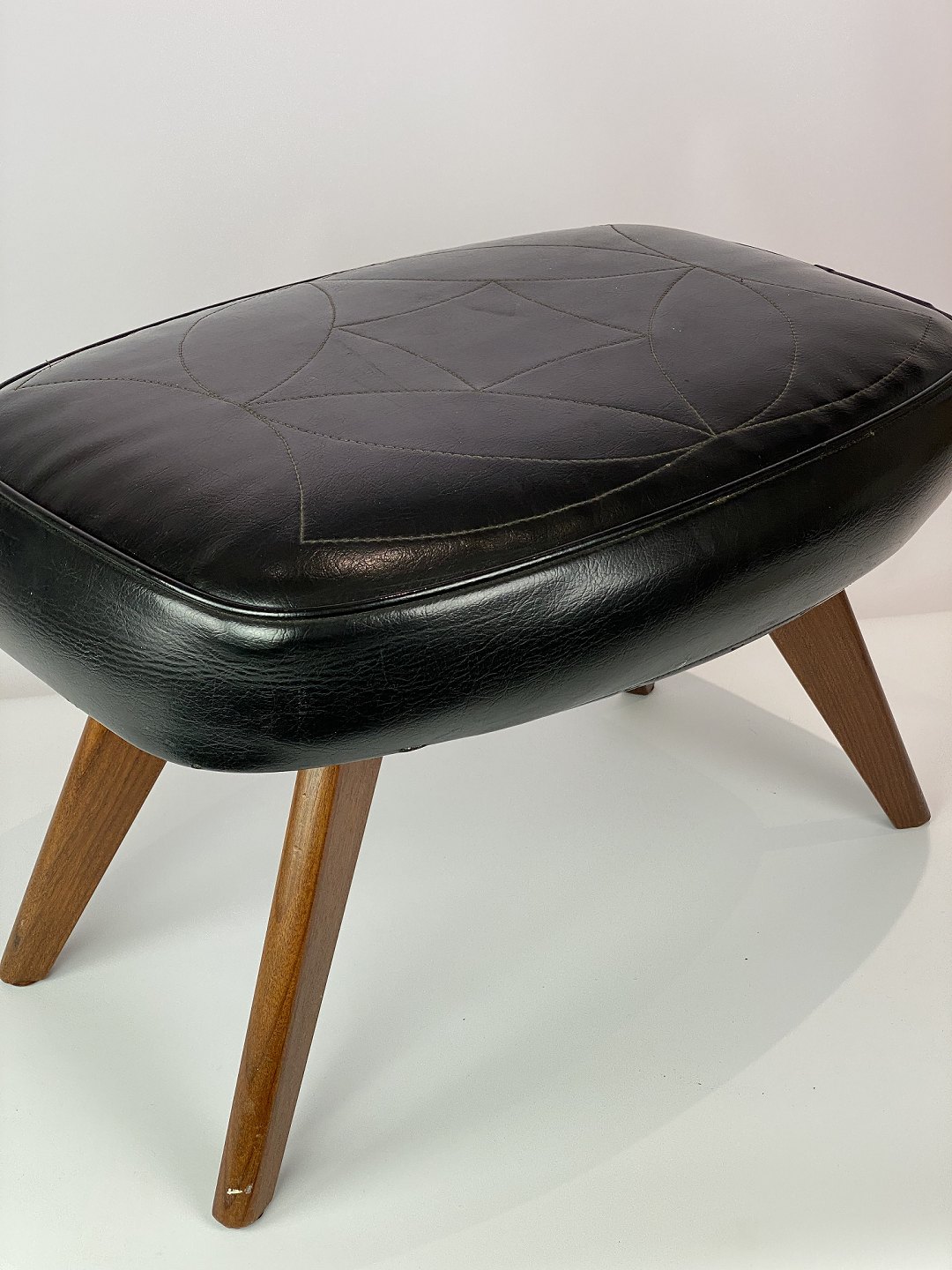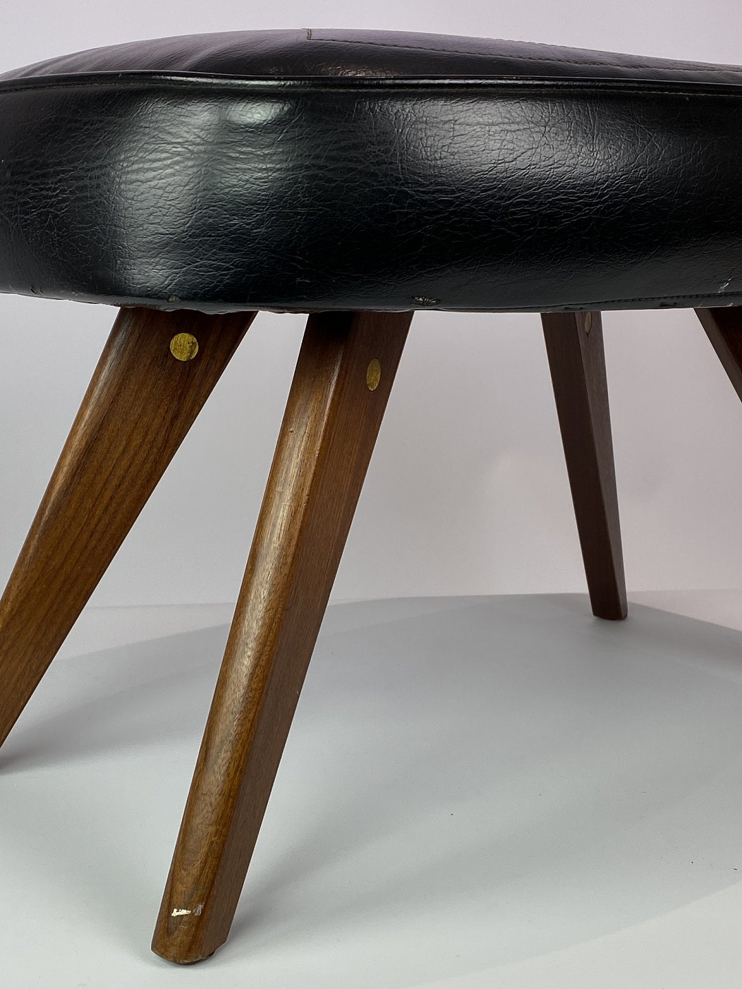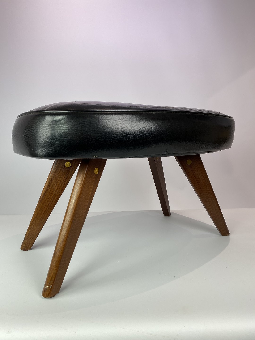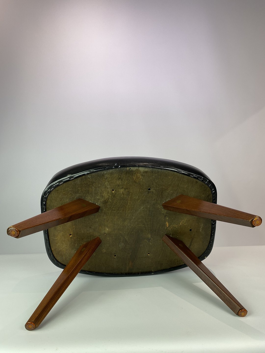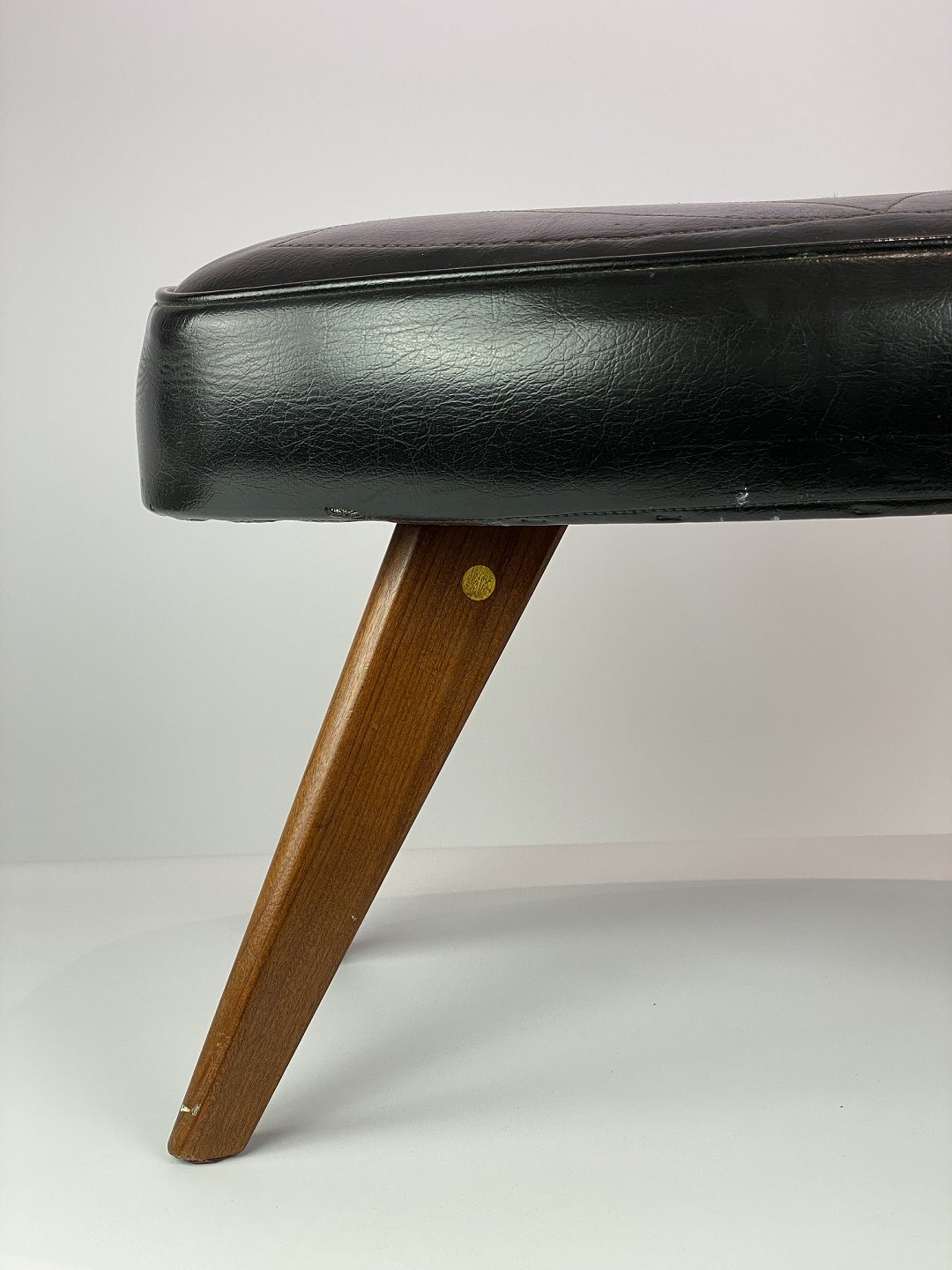 This stool, with its black artificial leather and teak legs, represents a classic piece of Danish design from the 1960s. The black faux leather adds a timeless elegance to the stool, while providing comfort and durability. The teak legs add a warm and natural contrast to the dark leather and contribute to the stool's charm.