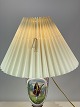 Bordlampe af porcelæn med motiv og bronze fra omkring 1920erne. Lampen er med papirskærm og er i flot antik stand.