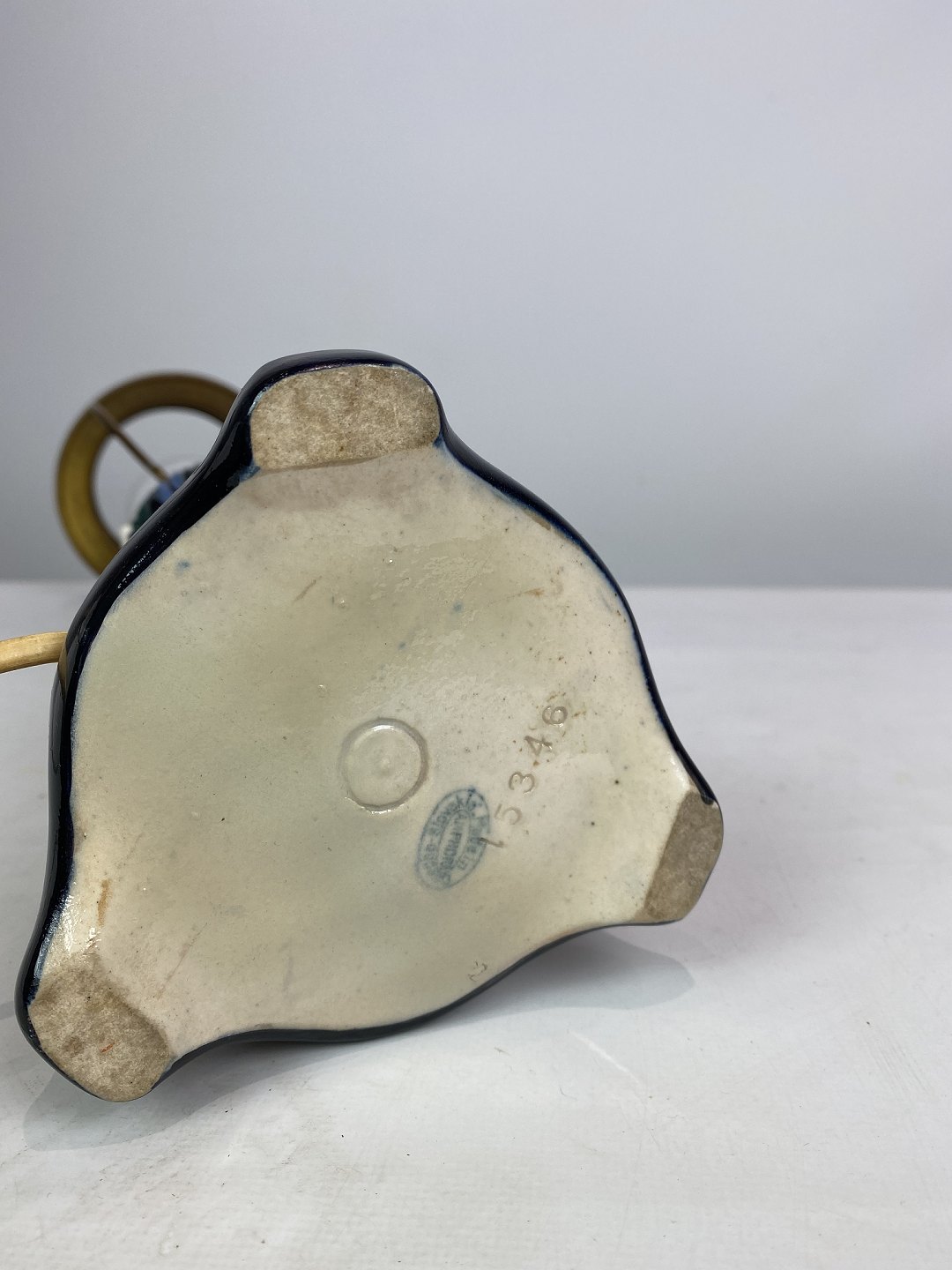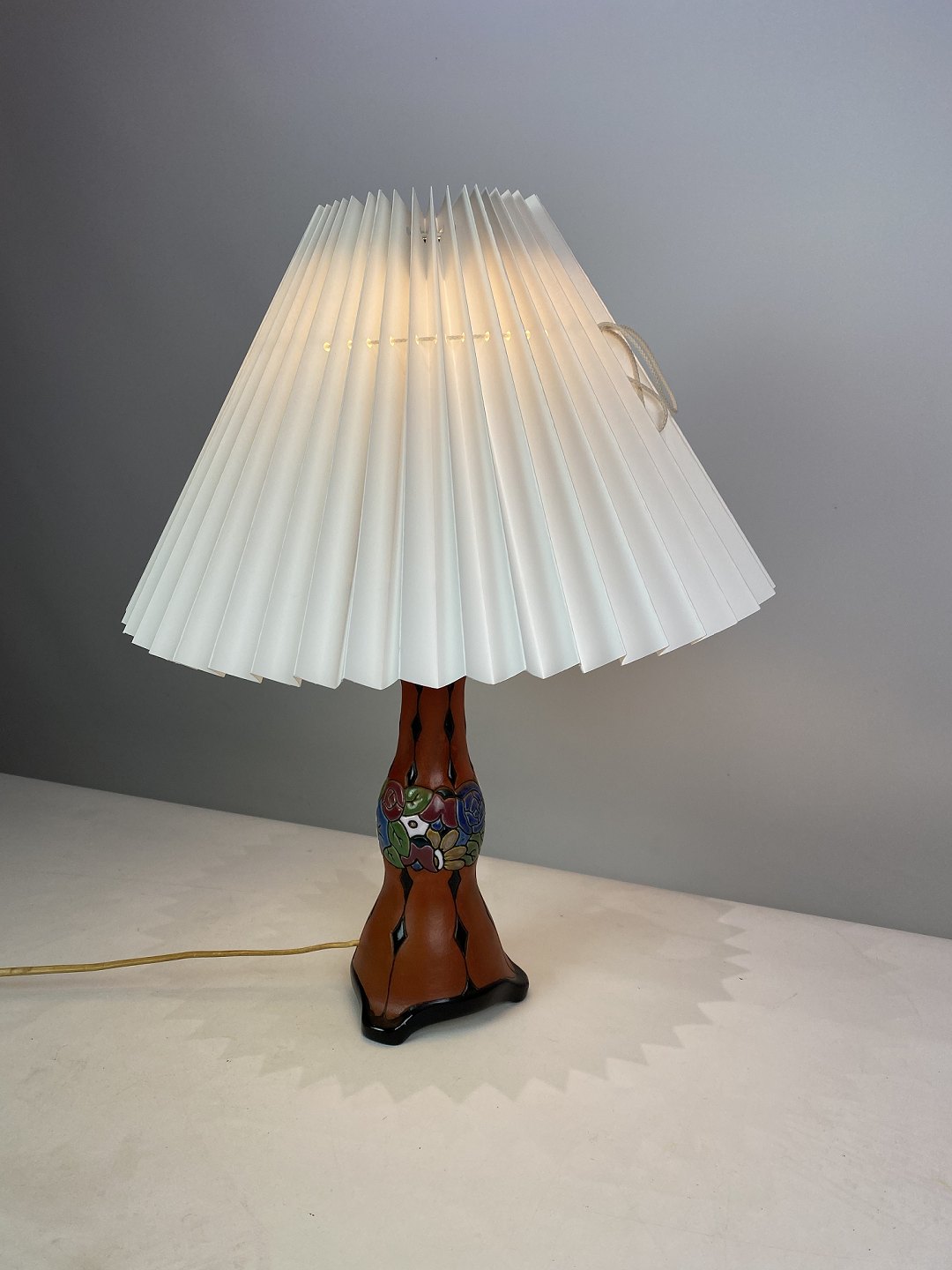 Ceramic table lampe with an orange glaze and with paper shade, from the 1960s. The lamp is with number 15436 and in great vintage condition.