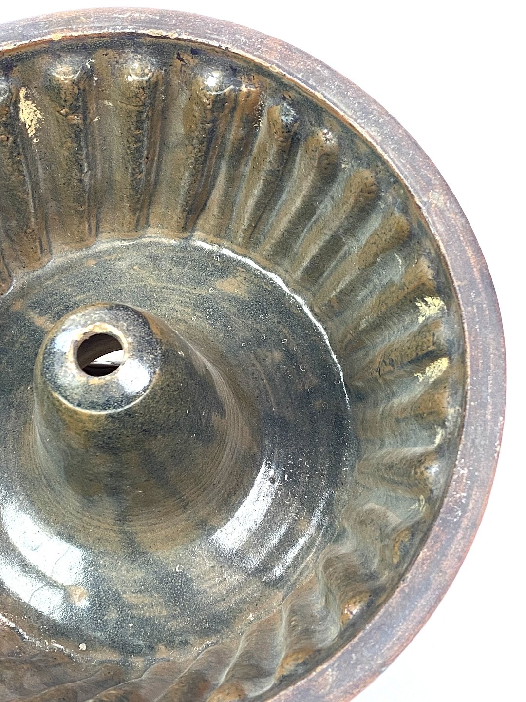 Keramik buddingeform i brune farver fra omkring 1930erne.
