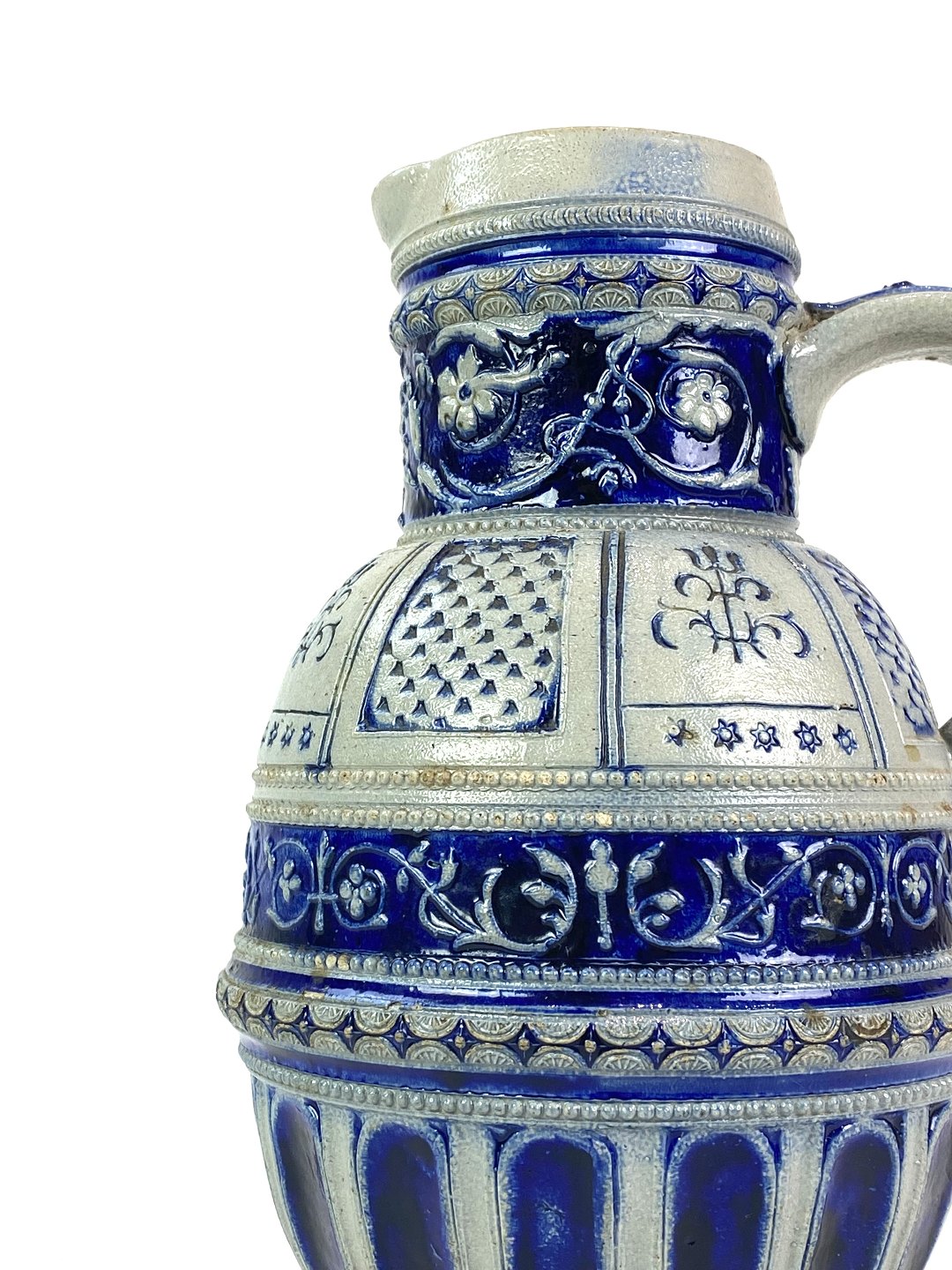 Keramik kande i grå og blå farver, nummeret 58, fra omkring 1940erne. Kanden er i flot brugt stand.