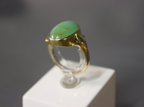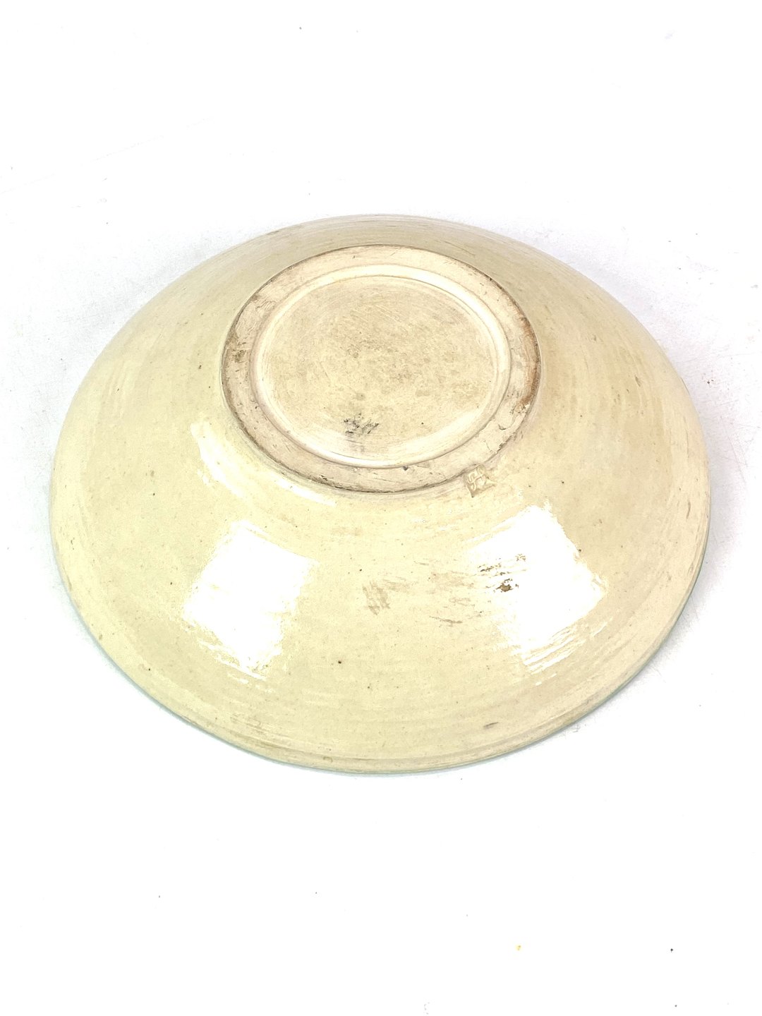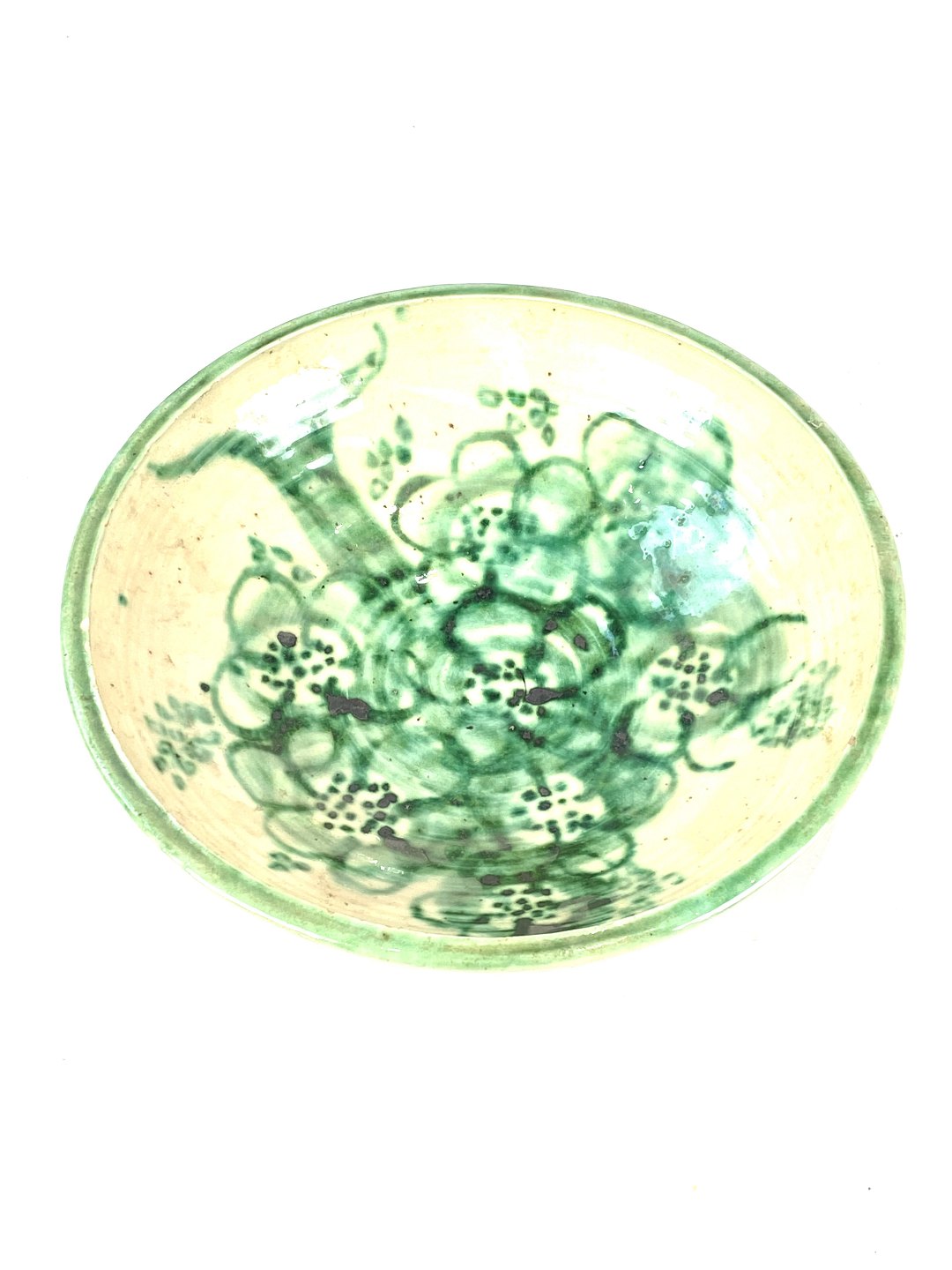 SolgtKeramik fad med lys glasur og dekoreret med grønt mønster fra 1940erne og signeret H. Fadet er i flot brugt stand.
