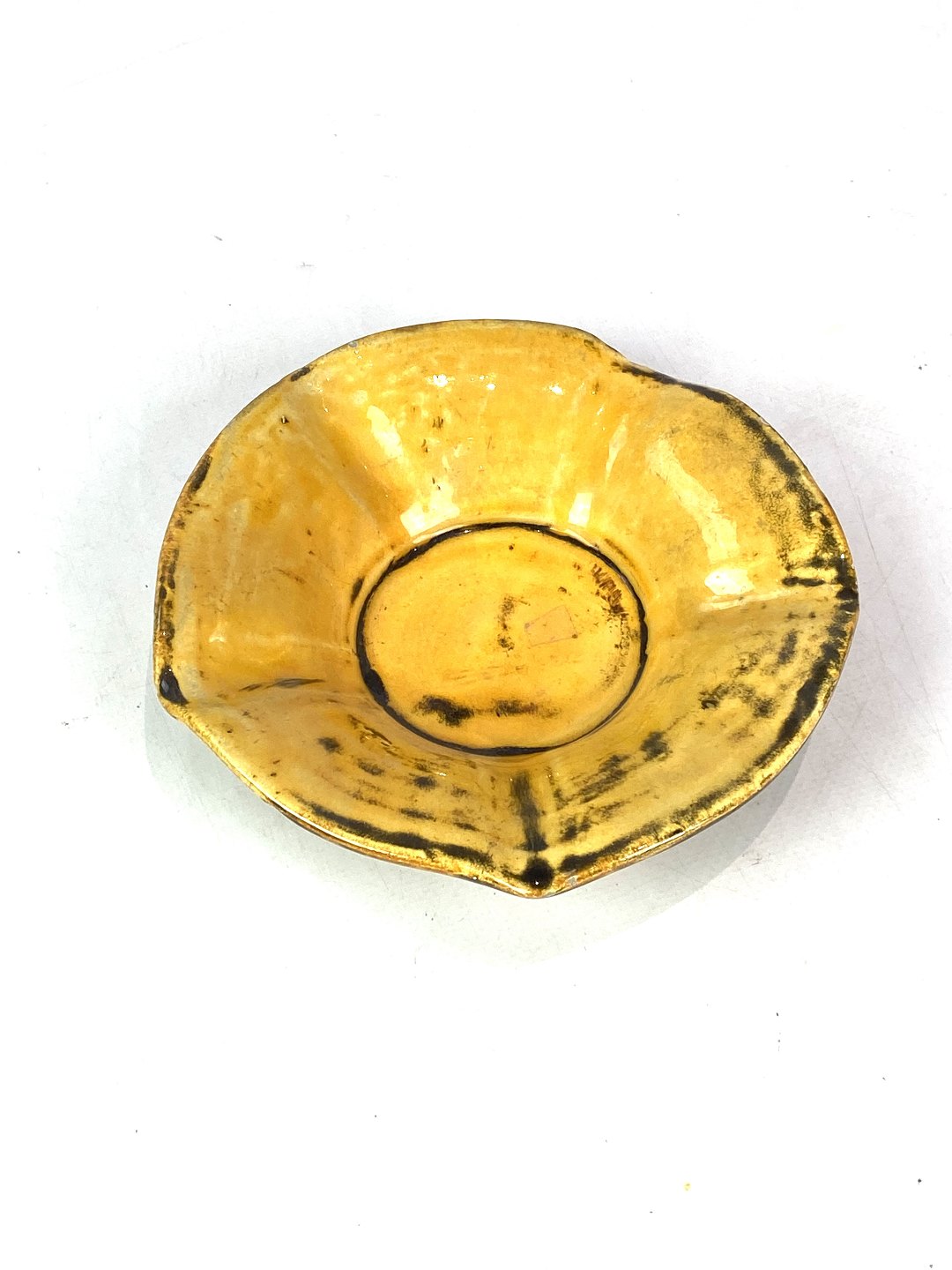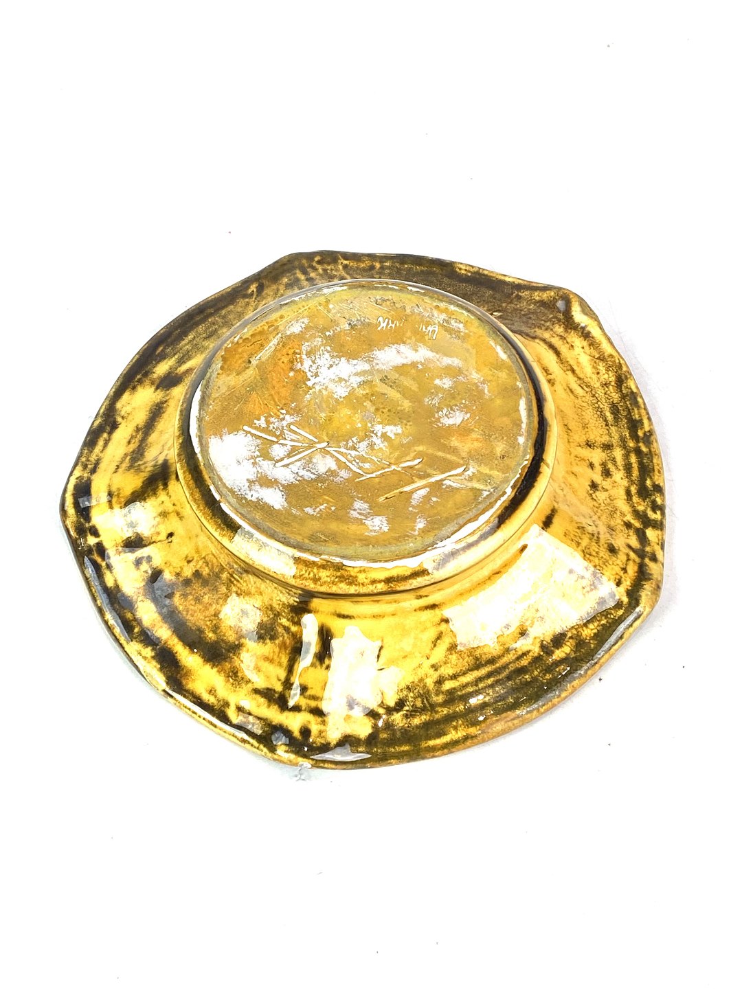 Ceramic dish with a yellow glaze by Herman A. Kähler from the 1940s.