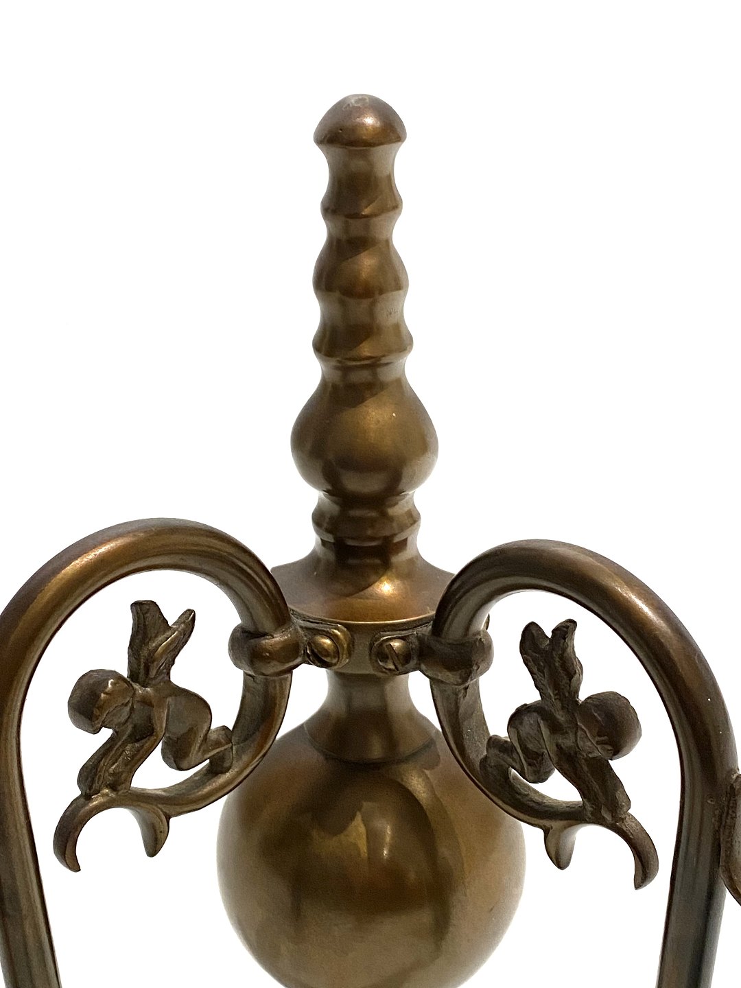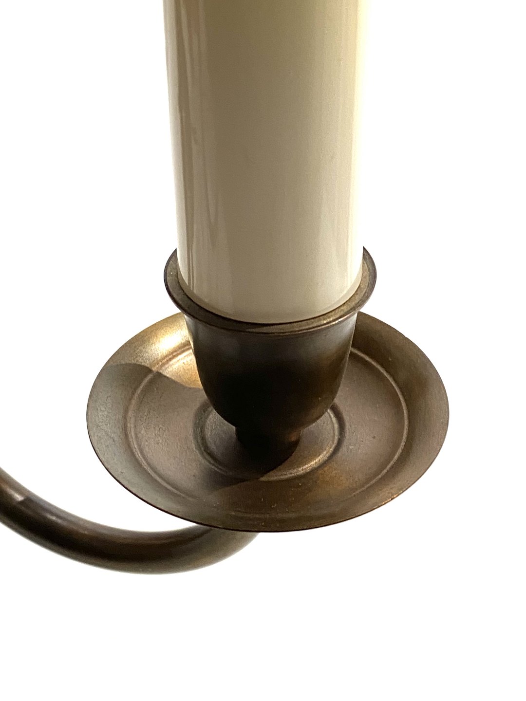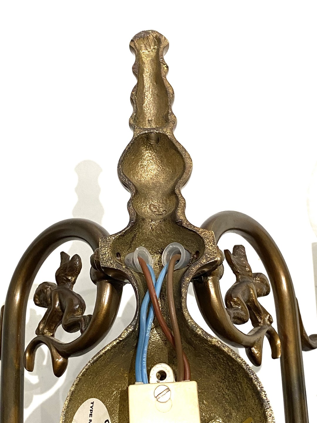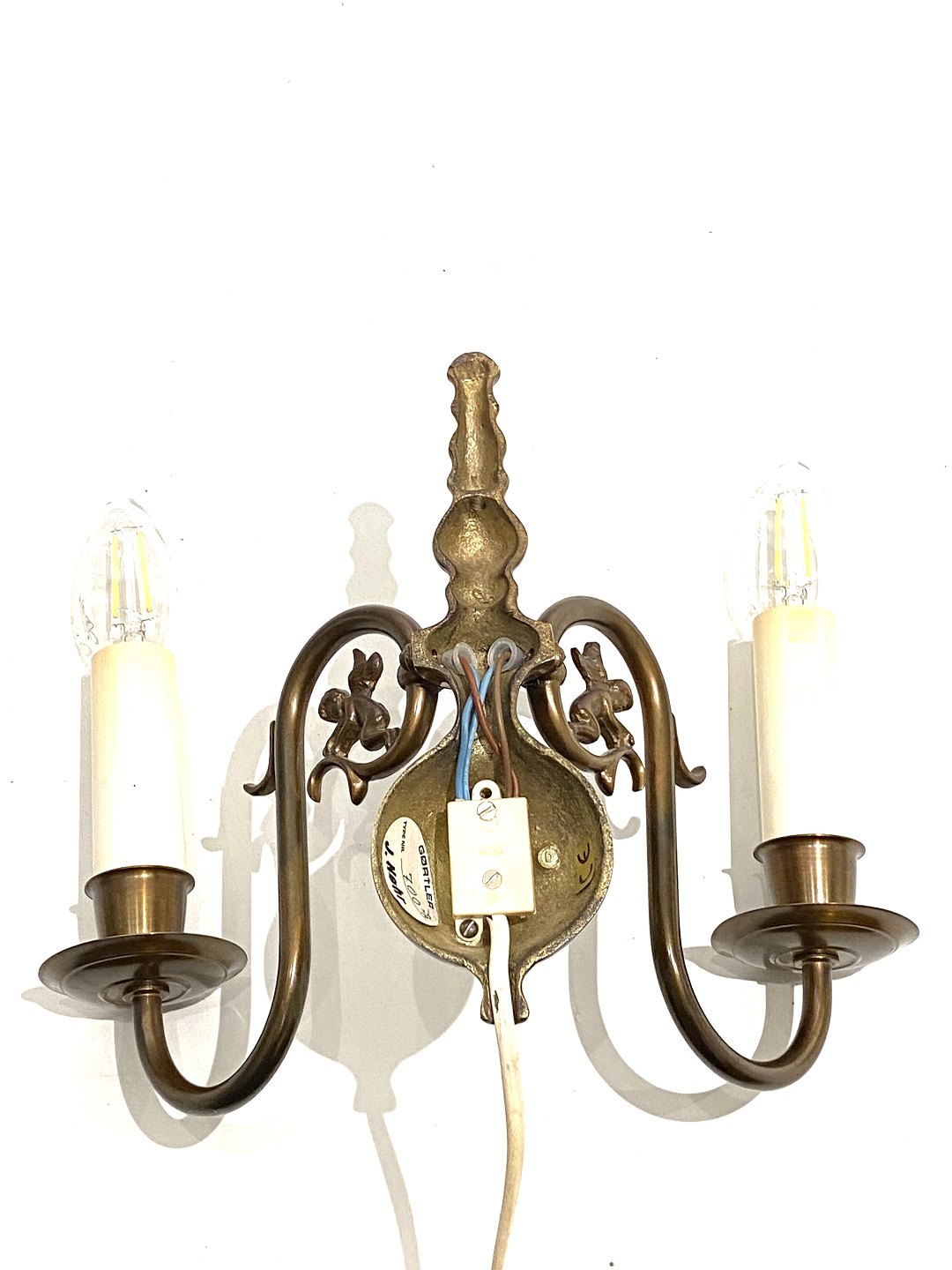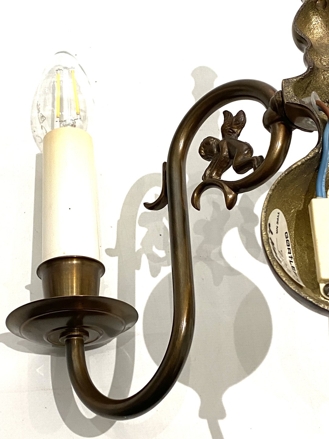 Wall mounted lamp of burnished brass decorated with angels from around the 1920s.