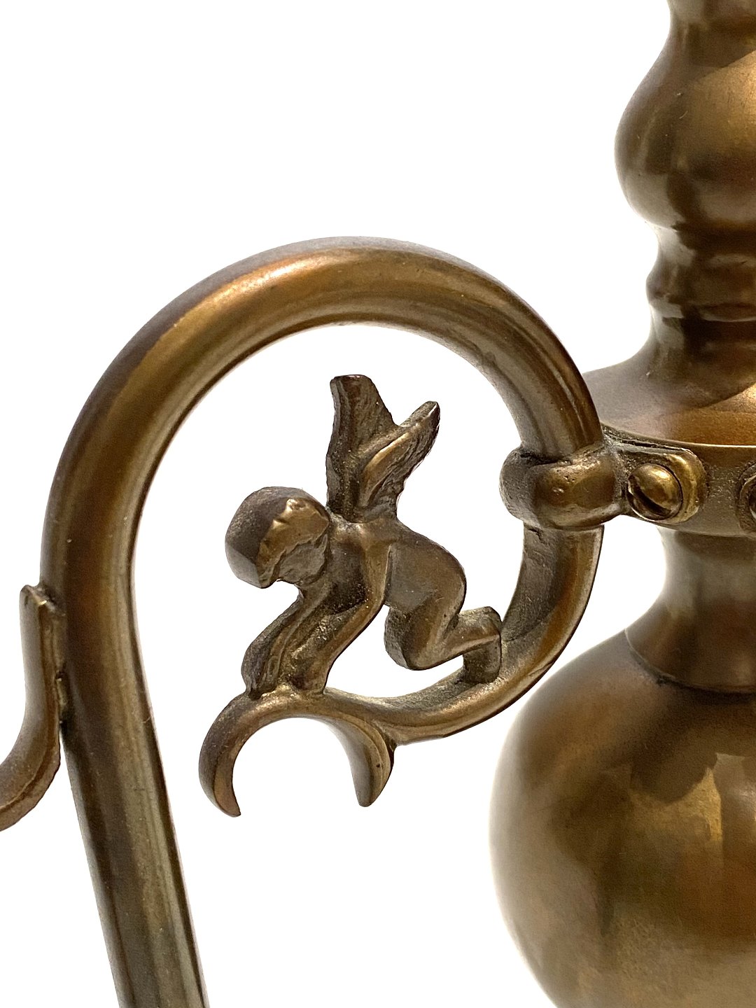 Wall mounted lamp of burnished brass decorated with angels from around the 1920s. The lamp is in great vintage condition.