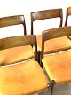 Et sæt af seks spisestuestole, model 75, i palisander og patineret naturlæder designet af N.O. Møller fra 1960erne. Stolene er i flot brugt stand.