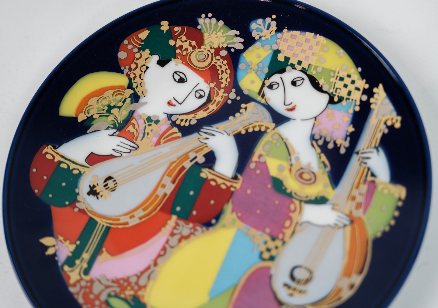 SoldColorful plate designed by Bjørn Wiinblad produced by Rosenthal. Oriental night music motif no. 2. Without damages