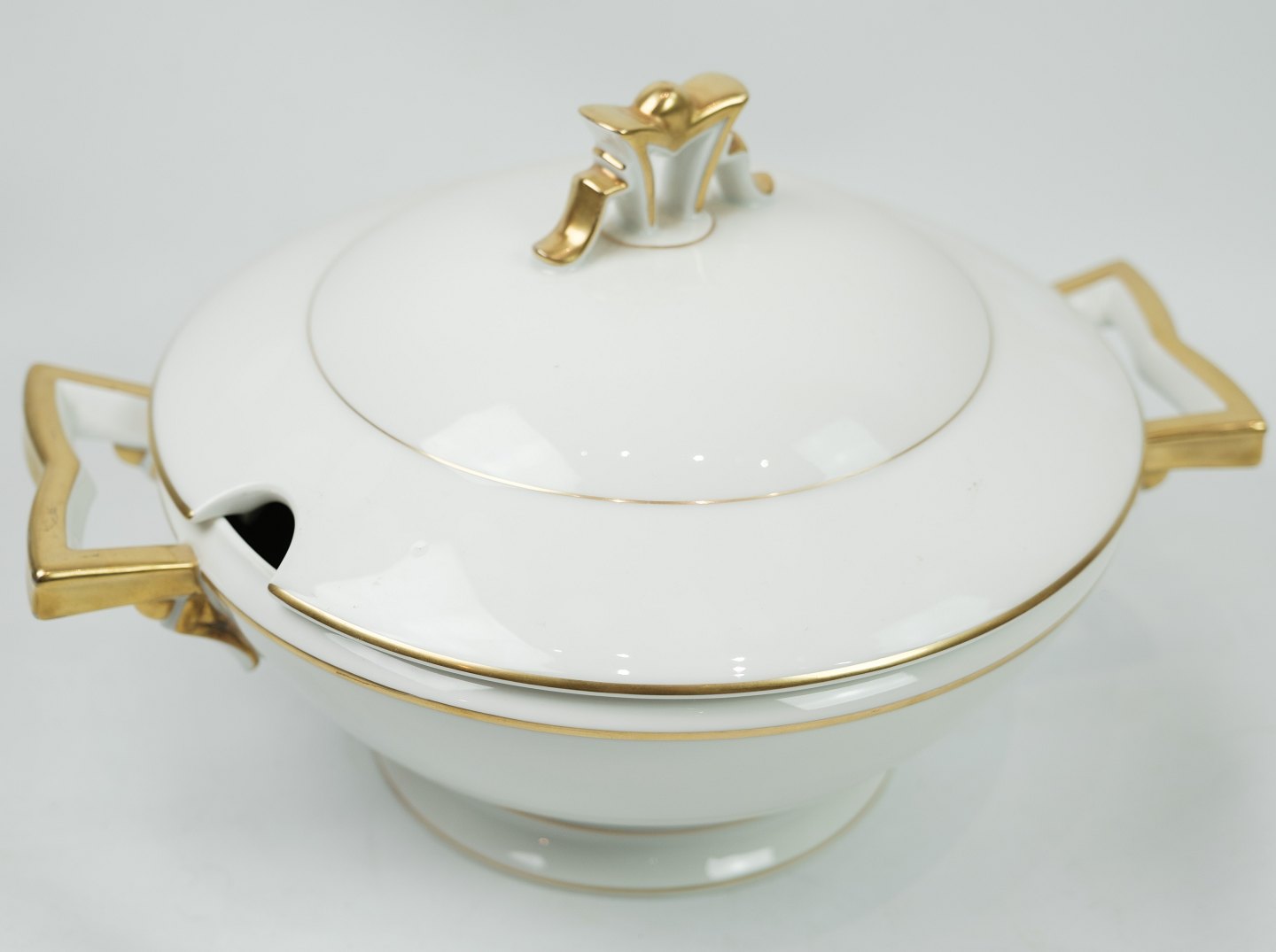 Stor suppe terrin af porcelænsfabrik Hautheim, model 7800. Står super flot i guldet i fin brugt stand.