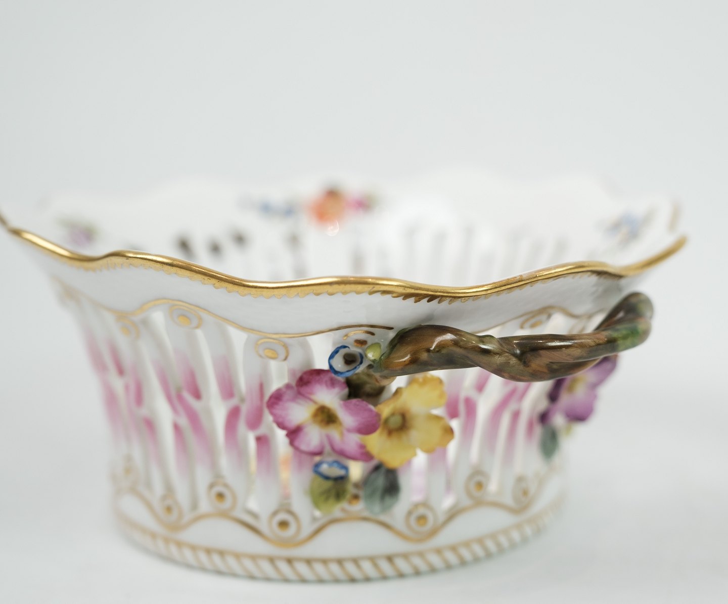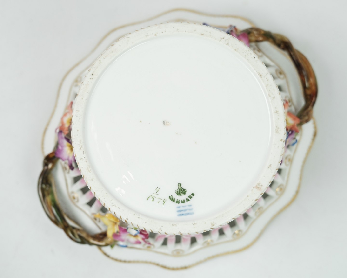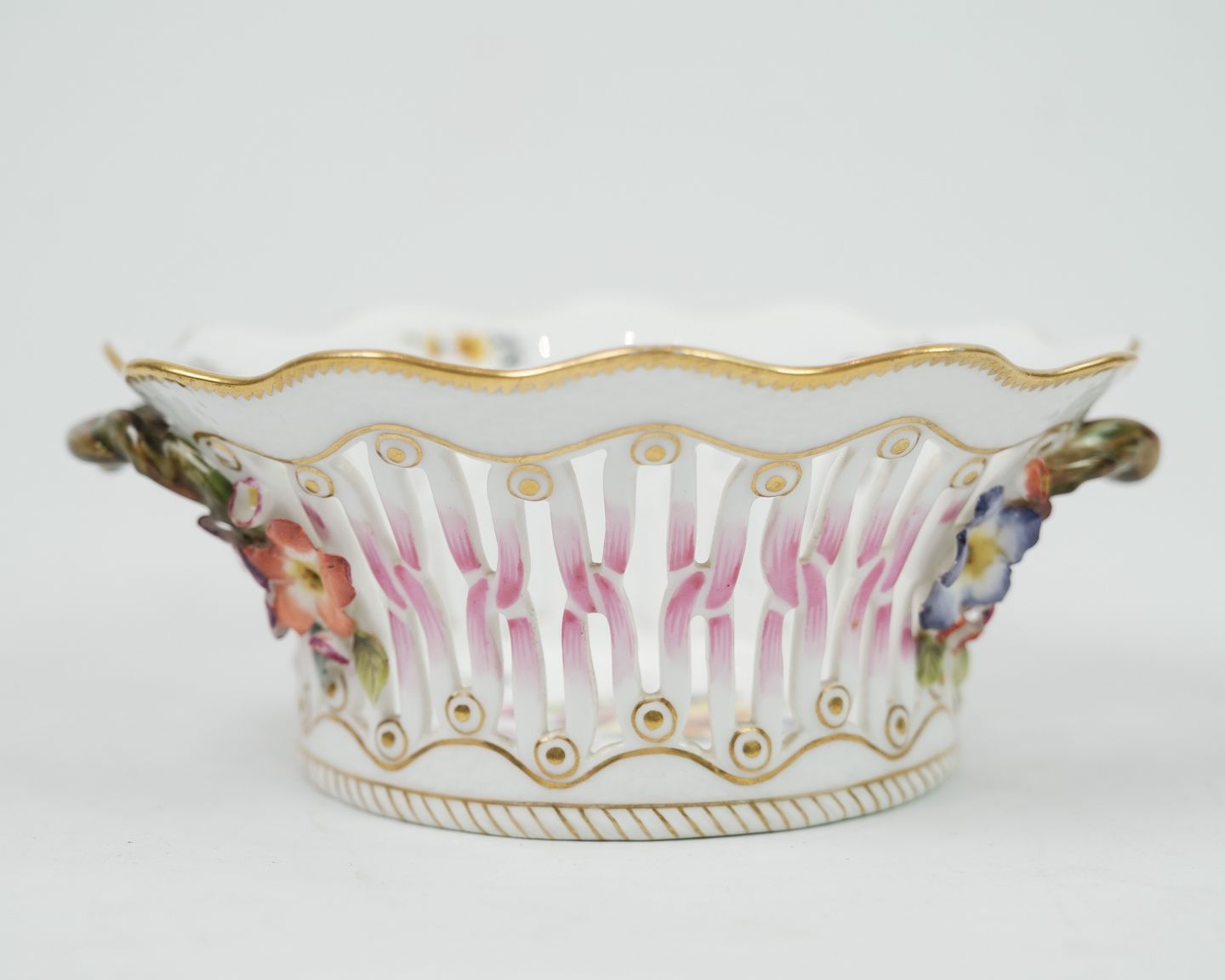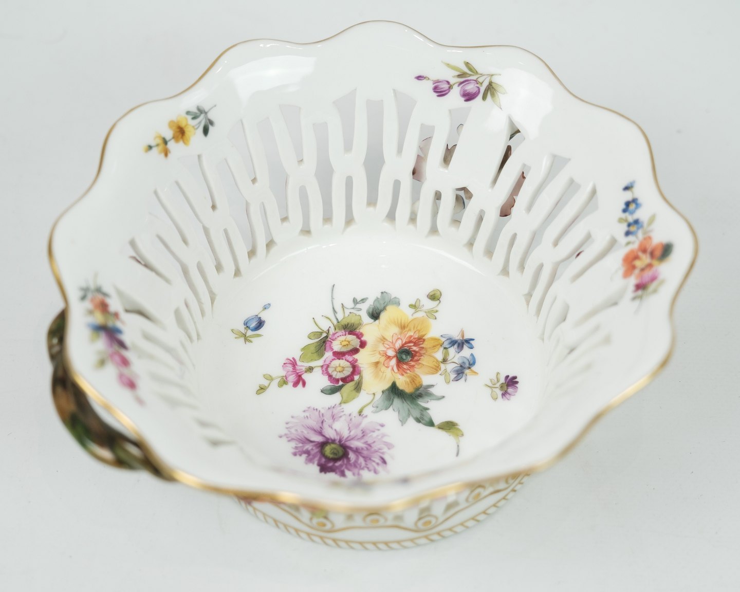 SolgtRoyal Copenhagen kongelig skål i gennembrudt med flotte påsatte blomster i mønstret saksisk blomst nr. 1574. Denne varer er utrolig smuk og har ingen skader. Den er før 1923 og meget sjælden