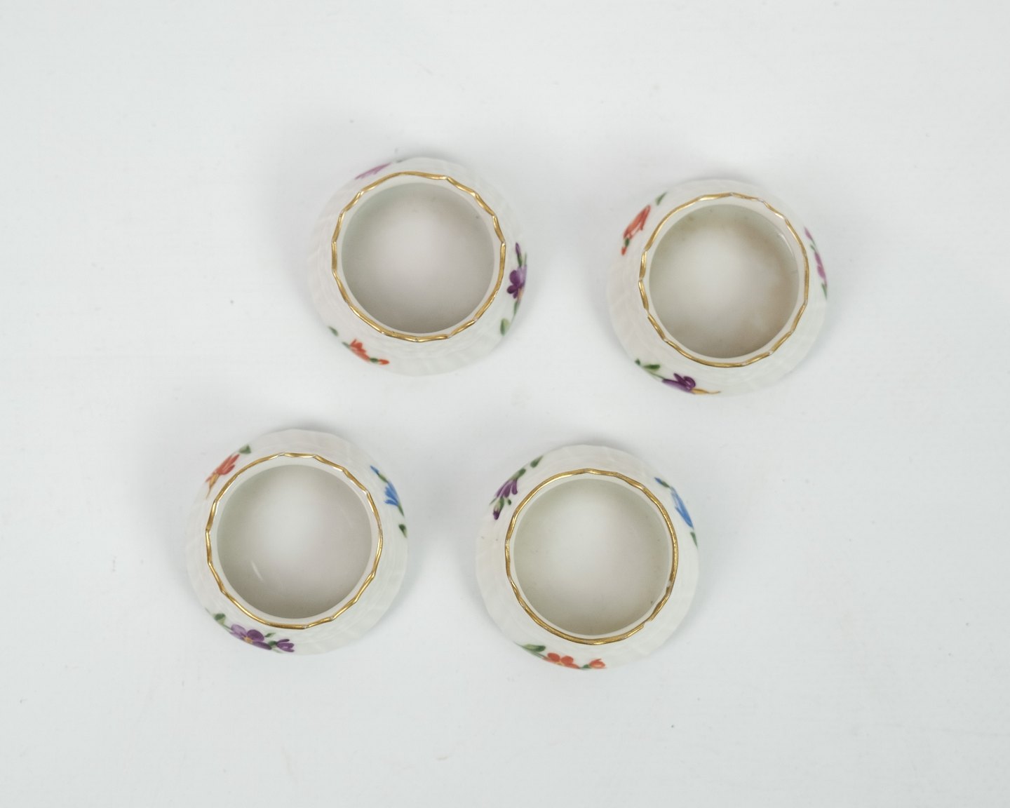 Small royal salt shaker in the pattern Saxon flower no. 1708. Appears intact and without damage