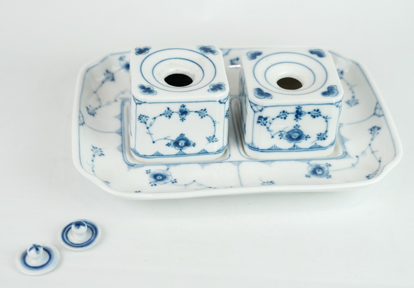Bing & Grøndahl musselmalet skrivesæt med blækhus egnet til blæk og sand i de gamle dage.