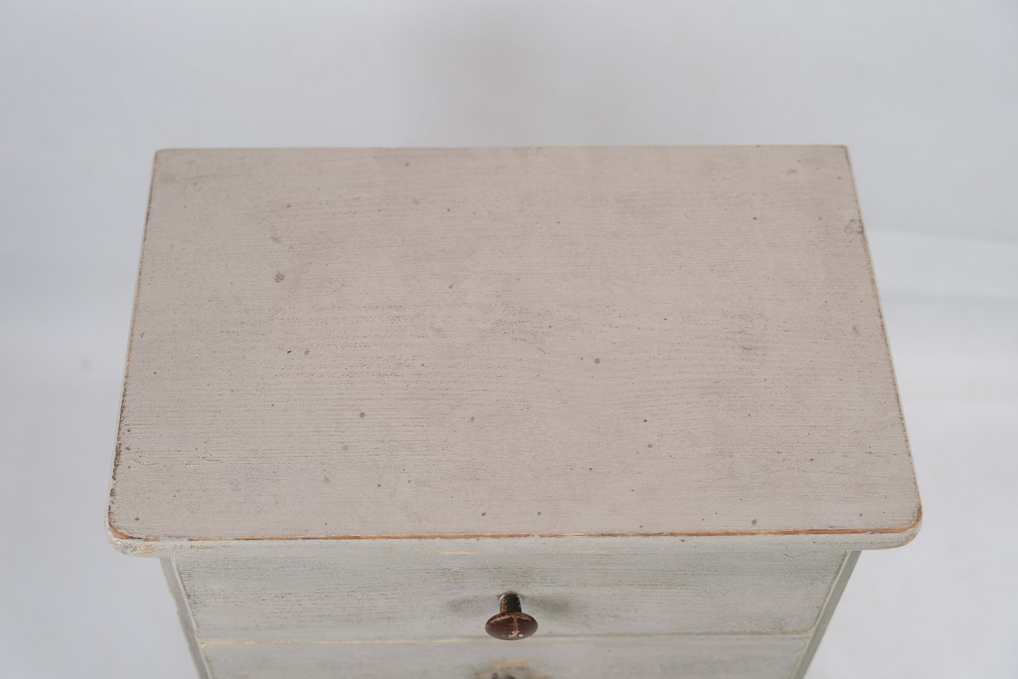 SolgtEt lille gustaviansk grå malet kommode med original bemaling fra omkring år 1840'erne. Står i meget fin original stand.