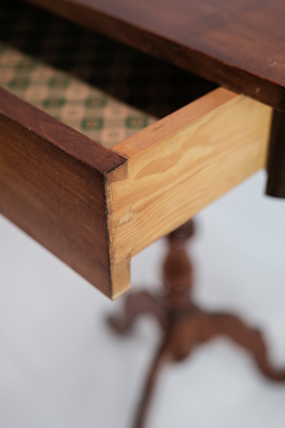 SolgtEt sidebord på søjle i mahogni fra omkring år 1850'erne. Står i meget flot håndpoleret stand.
