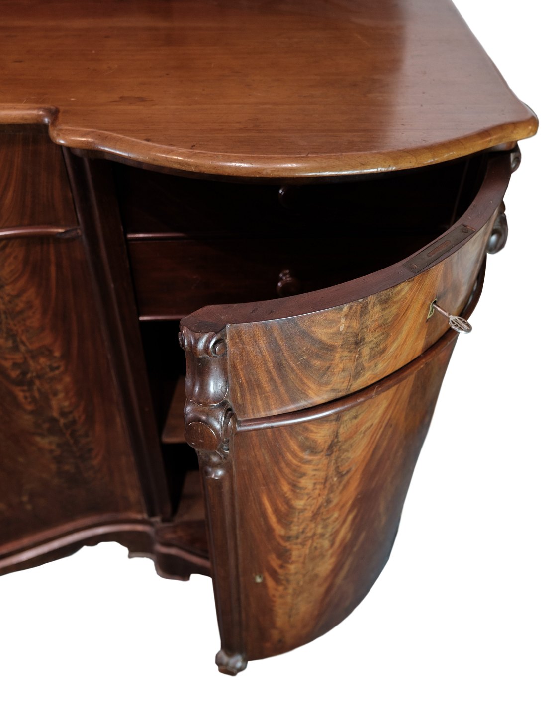 En senempire skænk i mahogni med en buede front fra 1840'erne.