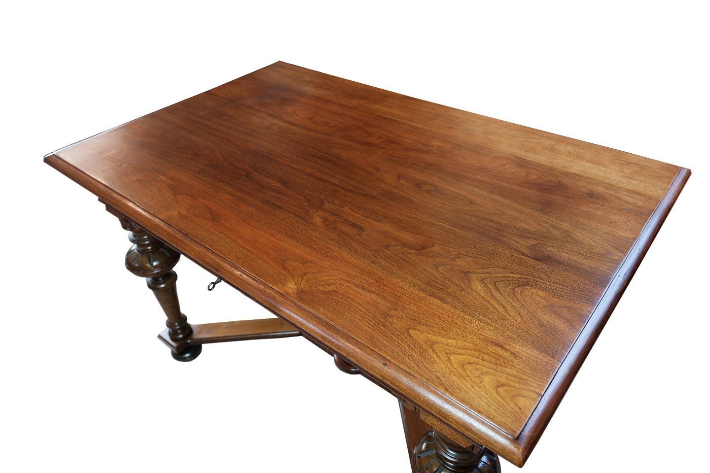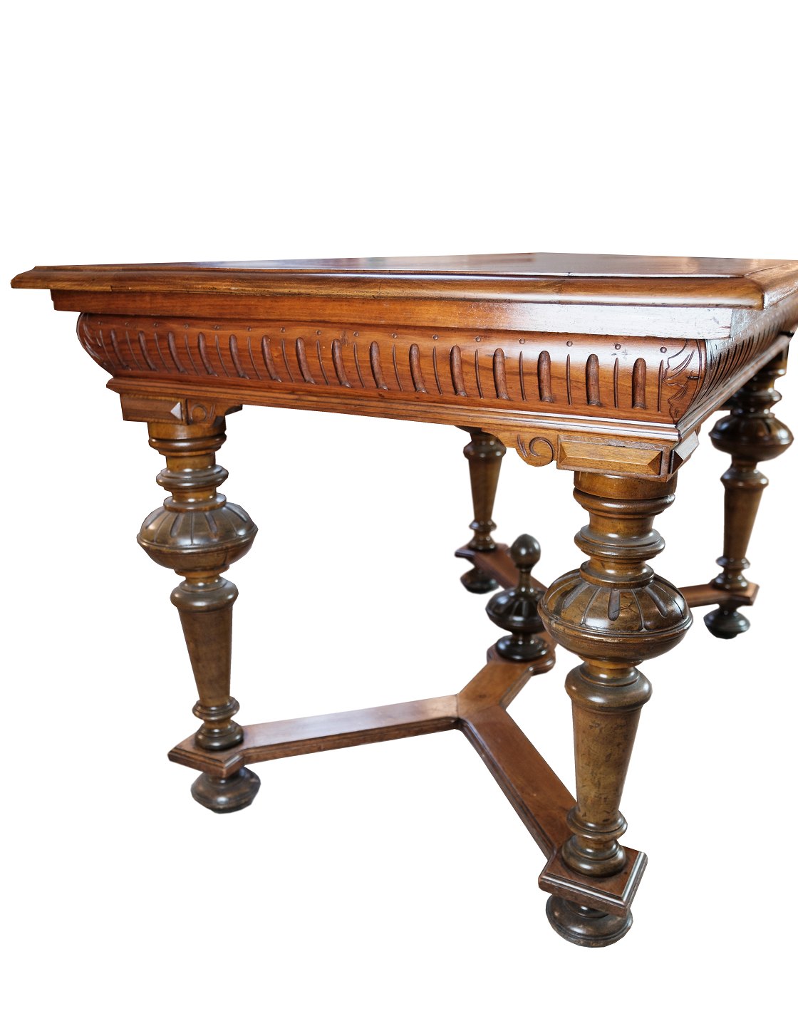 Walnut sideboard / desk from Denmark decorated with carvings from the year 1880s. Refurbished.